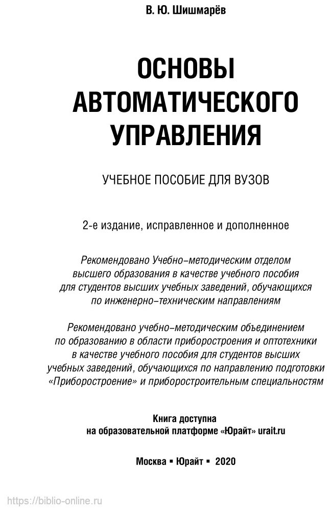 Основы автоматического управления. Учебное пособие для академического бакалавриата (Владимир Юрьевич Шишмарев); ЮРАЙТ, 2017