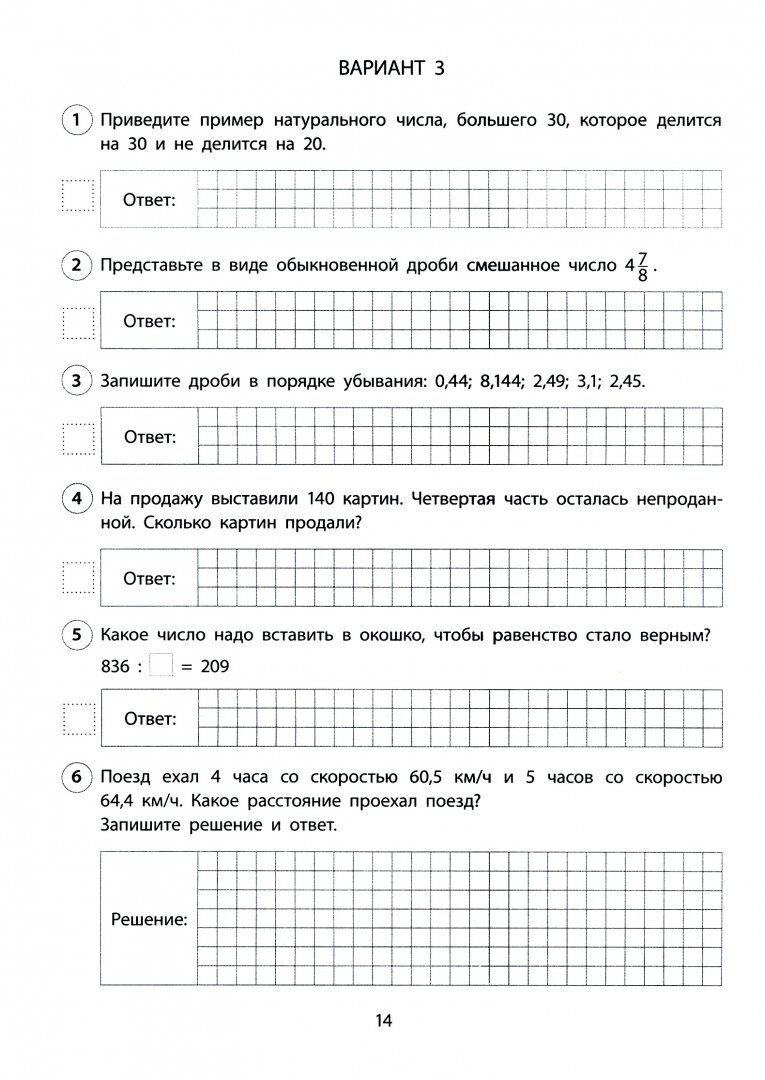 Пособие содержит 10 вариантов типовых заданий Всероссийской проверочной работы по математике за 5 класс, составленных в соответствии с требованиями Федерального государственного образовательного стандарта.