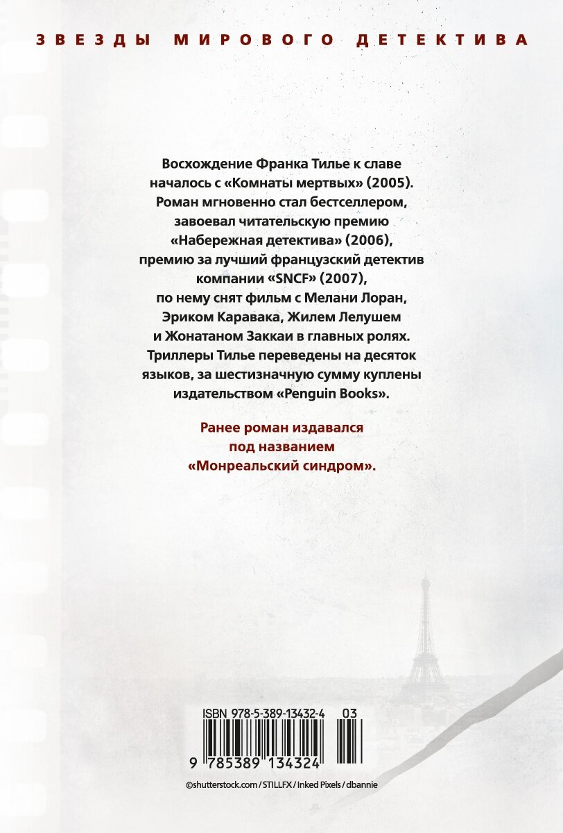 "Синдром Е" это книга в которой Франк Тилье сводит вместе своих героев Франка Шарко и Люси Энебель которые в предыдущих книгах не пересекались. Кстати эта книга уже издавалась и называлась она "Монреальский синдром". Смотрите не попадитесь на этот трюк издателей. Сам роман очень интересный.Сюжет динамичный В конце каждой главы Тилье оставляет интригу,поэтому остановиться и оторваться от книги очень сложно. По мне так эта лучшая книга Франка Тилье. Хотя может просто эта книга с которой началось моё знакомство с этим потрясающим писателем. Единственный недостаток романа как мне показалось это быстро наступившая развязка сюжета.Как будто Тилье надоело писать и он быстренько завершил роман. Но это лишь моё мнение,может Вам так не покажется.