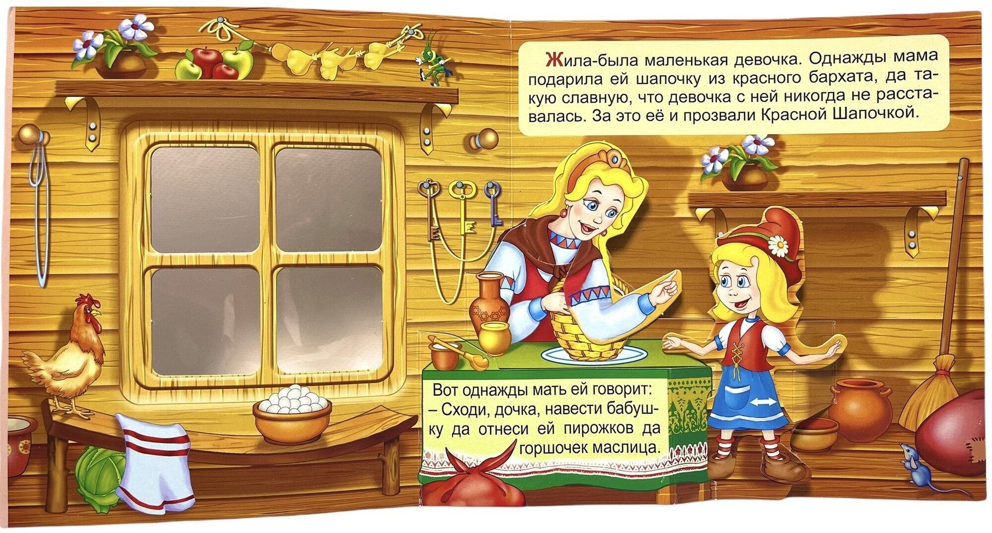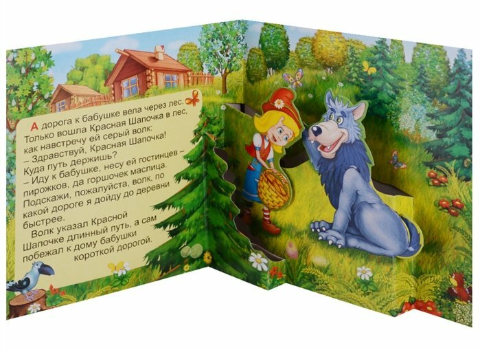 Предлагаем вашему вниманию книгу "Красная шапочка". Книжка-панорама с движущимися картинками. Вырубка на обложке.