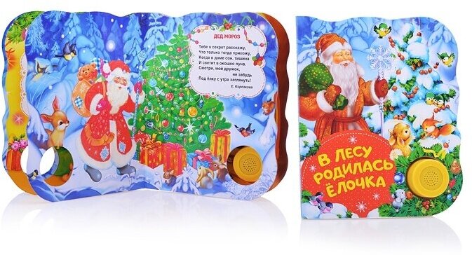 На днях я купила своему Малышу эту замечательную новогоднюю книжку! Мне понравилась, что в ней есть известная новогодняя праздничная песенка, а именно «в лесу родилась ёлочка, в лесу она жила, зимой и летом...»! Обожаю эту песенку! Также я оценила, что у песенки хороший звук громкости! Порадовала книжка и своими страницами из плотного картона с яркими и красочными картинками! А ещё в этой книге есть стишки и песенки на новогоднюю тематику! Это очень Круто! Я как раз искала! Очень довольна покупкой! Спасибо любимому книжному магазину буквоеду! Это отличный подарок на Новый год! Обязательно купите в подарок! Дети оценят!
