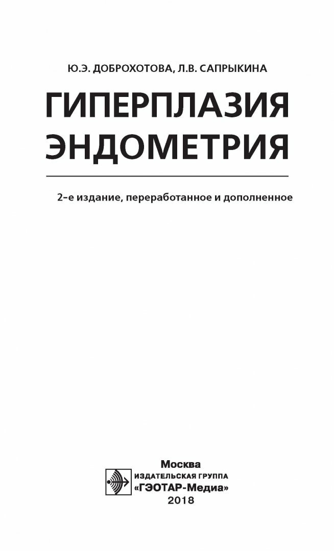 Книга: Гиперплазия эндометрия (Доброхотова Юлия Эдуардовна; Сапрыкина Людмила Витальевна); ГЭОТАР-Медиа, 2021