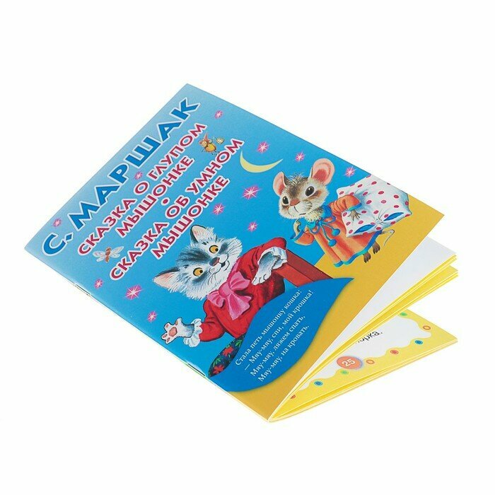 Симпатичная миниатюрная книжица. Плотная качественная бумага. Милое оформление страниц, много красивых цветных иллюстраций. Книгу приятно держать в руках и удобно носить с собой, не только взрослому, но и ребёнку. Текст крупный, удобно читать. Сказки о глупом и умном мышонке достаточно известны и поучительны, ребёнок слушает с интересом. Переводы чешских песенок просты к прочтению и запоминанию, то, что надо для малышей.