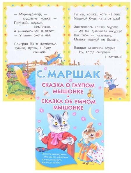 Отличная небольшая книжка с красочными хорошими рисунками. Малышам удобно самим держать и листать, бумага плотная, качественная. 2 сказки о мышонке. Особенно хорошо читать впечатлительным детям, так как Сказка об умном мышонке не даст им поплакать, что кошка съела мышонка. Воспринимается как продолжение Сказки о глупом мышонке.