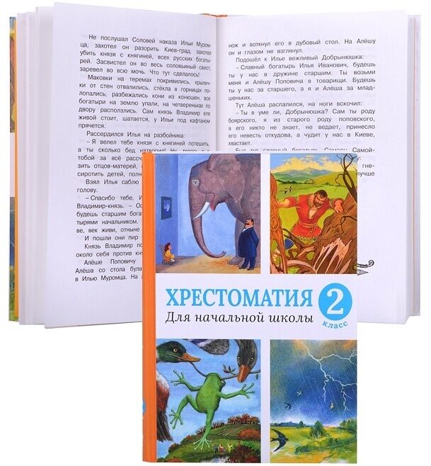 В хрестоматию вошли литературные произведения из школьной программы и рекомендованные для внеклассного чтения второклассникам – русские народные сказки и былины; стихотворения, рассказы и сказки классиков отечественной литературы и современных писателей.