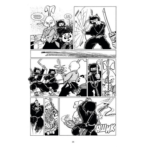 Потрясающий чёрно-белый комикс о приключениях известного кролика самурая. В сборнике собраны 10 историй, каждая из которых расскажет нам о приключениях и прошлом Усаги. Здесь мы встретим его друга Гэнноскэ - хитрого носорога, Томоэ - девушку самурая и многих других. Комикс нарисован в необычной стилистике, но в нём есть философия и хорошее знание японской культуры прошлых веков. Комикс в твёрдой глянцевой обложке, имеет гладкую бумагу, и галерею обложек и несколько набросков. Очень жду продолжения в следующих томах. Книга понравится фанатам японской самурайской тематики и возможно фанатам классических черепашек ниндзя.