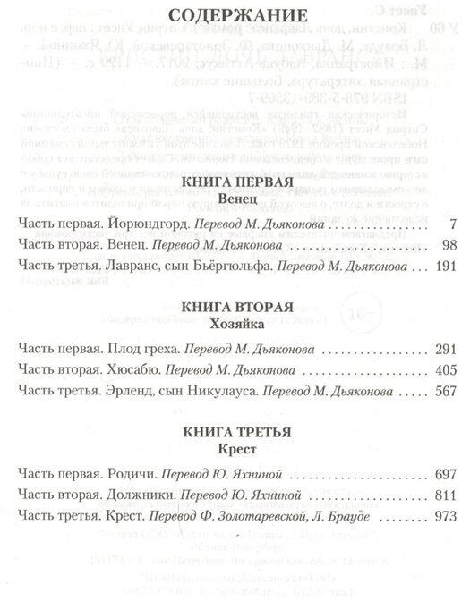 | Автор(ы) | Яхина Ю. (переводчик), Унсет Сигрид , Брауде Людмила Юльевна (переводчик), Золотаревская Ф. (переводчик), Дьяконов Михаил Алексеевич (переводчик) |