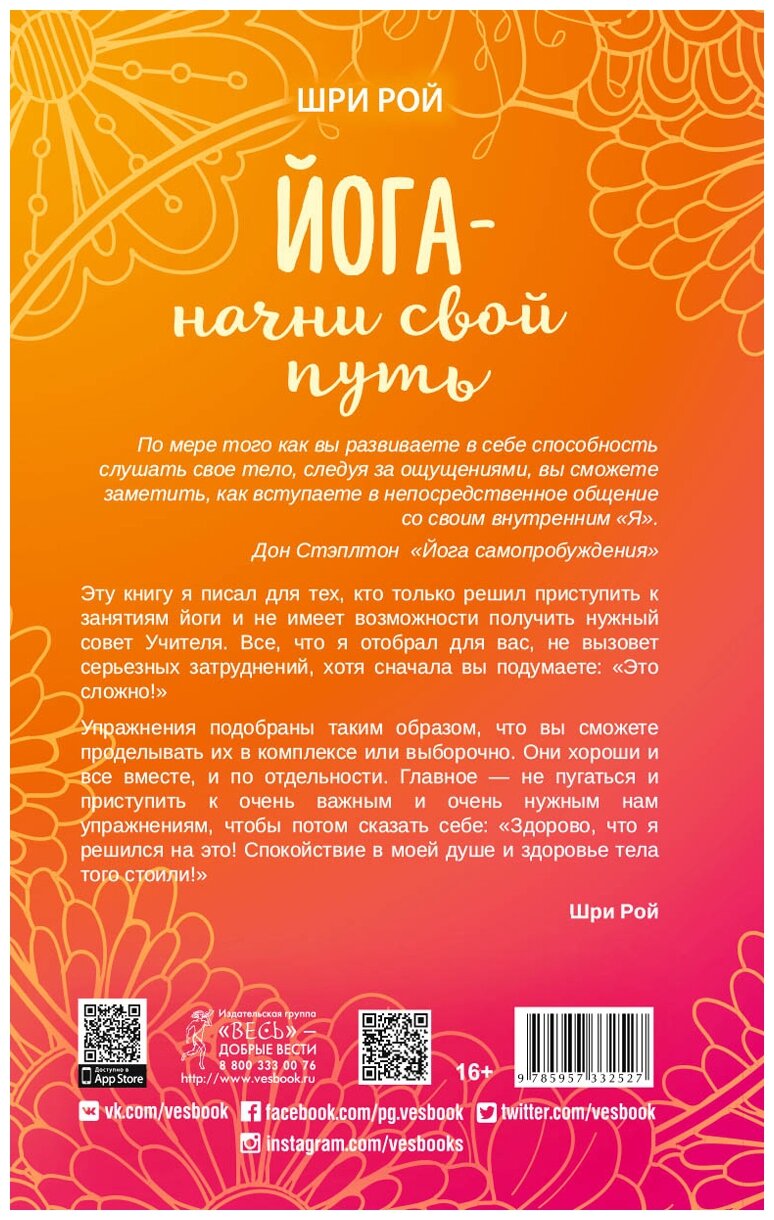 «Йога — для всех!» — это не преувеличение. Опыт автора показывает, что все пришедшие и постигающие суть и практику йоги обретают гармонию и здоровье, какие не покупаются ни за какие деньги. Попробуйте и вы свои силы на пути йоги!
