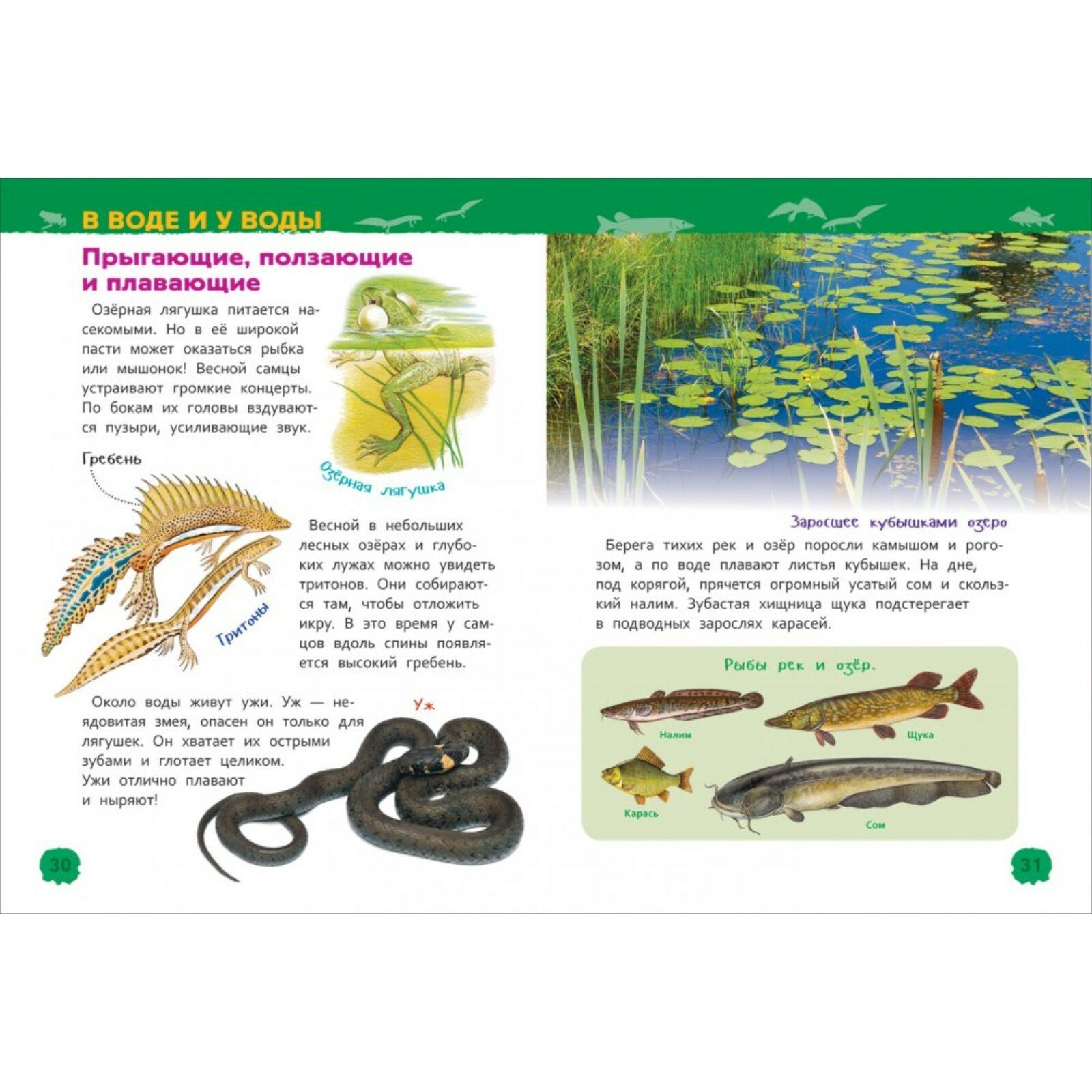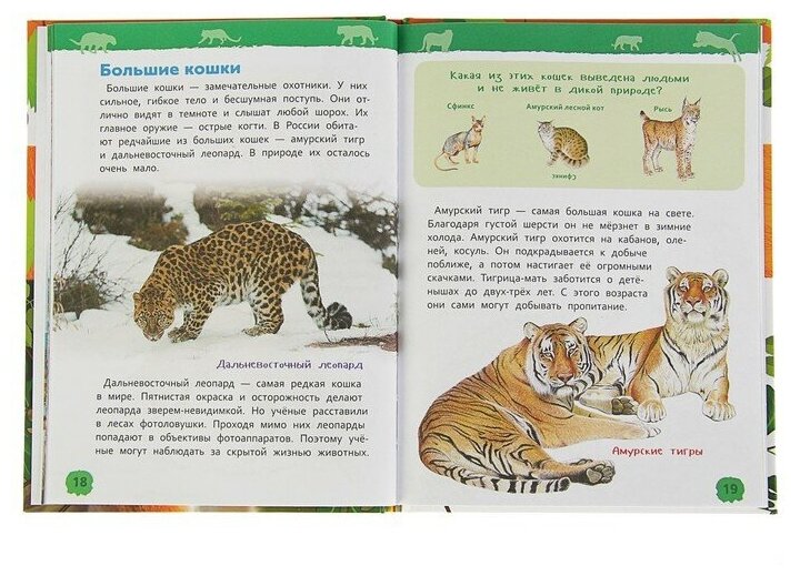 Прекрасная энциклопедия для детей, очень нравится вся серия. Здесь нет огромных разворот и ярких страниц, эта книга идеально подойдёт для знакомства ребёнка с книгами- обложка плотная, картинка реалистичные и не сильно яркие.В данной книге представлены животные России, поделены на места обитания, даже есть небольшие задания с картинками в конце глав. Ребёнку очень понравилось