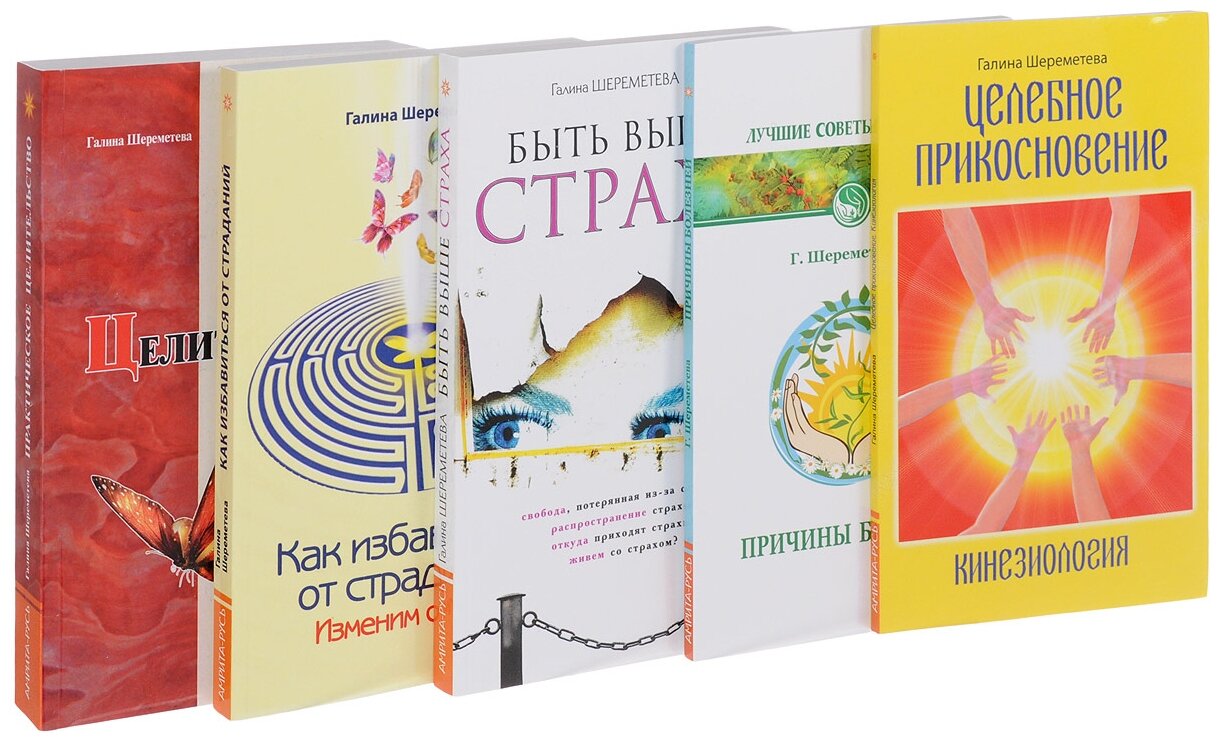 Комплект из 5 книг. В своих книгах целитель, психолог, педагог, биоэнерготерапевт, кинезиолог Г. Шереметева дает ответы на многие вопросы, которые могут облегчить не только ваше состояние, но и сделать вашу жизнь гармоничной и радостной.