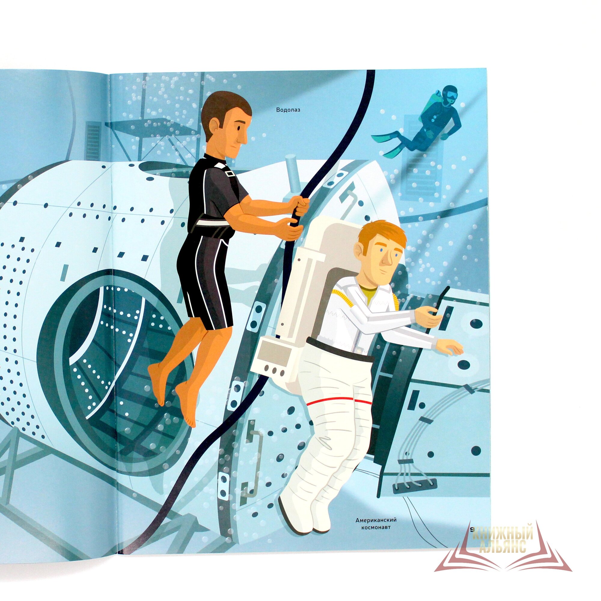 Посмотри, как космонавты тренируются перед полётом на орбиту, и подбери им скафандры и оборудование. Познакомься с самыми известными космонавтами - ты узнаешь, кто первым полетел в космос, кто высадился на Луне, а кто управлял самым настоящим луноходом.
