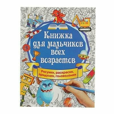 Наша «Книжка для мальчиков всех возрастов. Рисунки, раскраски, придумки, головоломки» поможет воплотить любые фантазии, а также развить воображение, творческое мышление, внимание, сообразительность и графические навыки.
