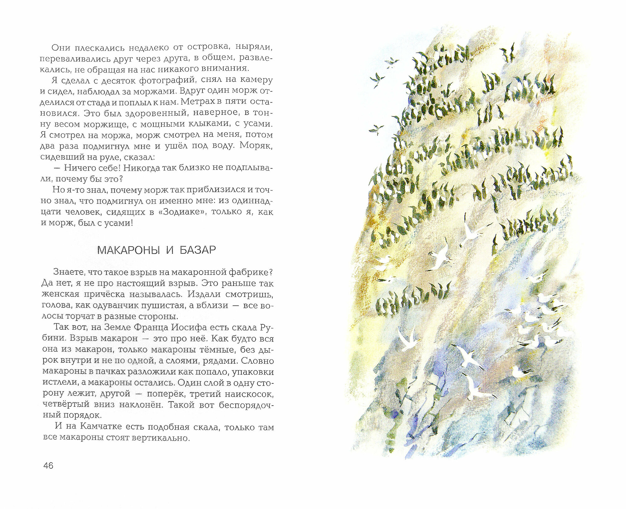 Пару лет назад Олег Бундур на атомном ледоколе «50 лет Победы» дошёл до Северного полюса, делая по пути заметки, из которых и получилась эта славная и очень познавательная книжка. Она расскажет о градусах и морских милях, параллелях и меридианах, устройстве ледокола и его экипаже, о Баренцевом море и тёплом течении Гольфстрим, которое делает его незамерзающим, удивительной флоре и фауне архипелага Земля Франца Иосифа, арктической метеорологической станции, Северном полюсе и его первооткрывателях и о многом другом.