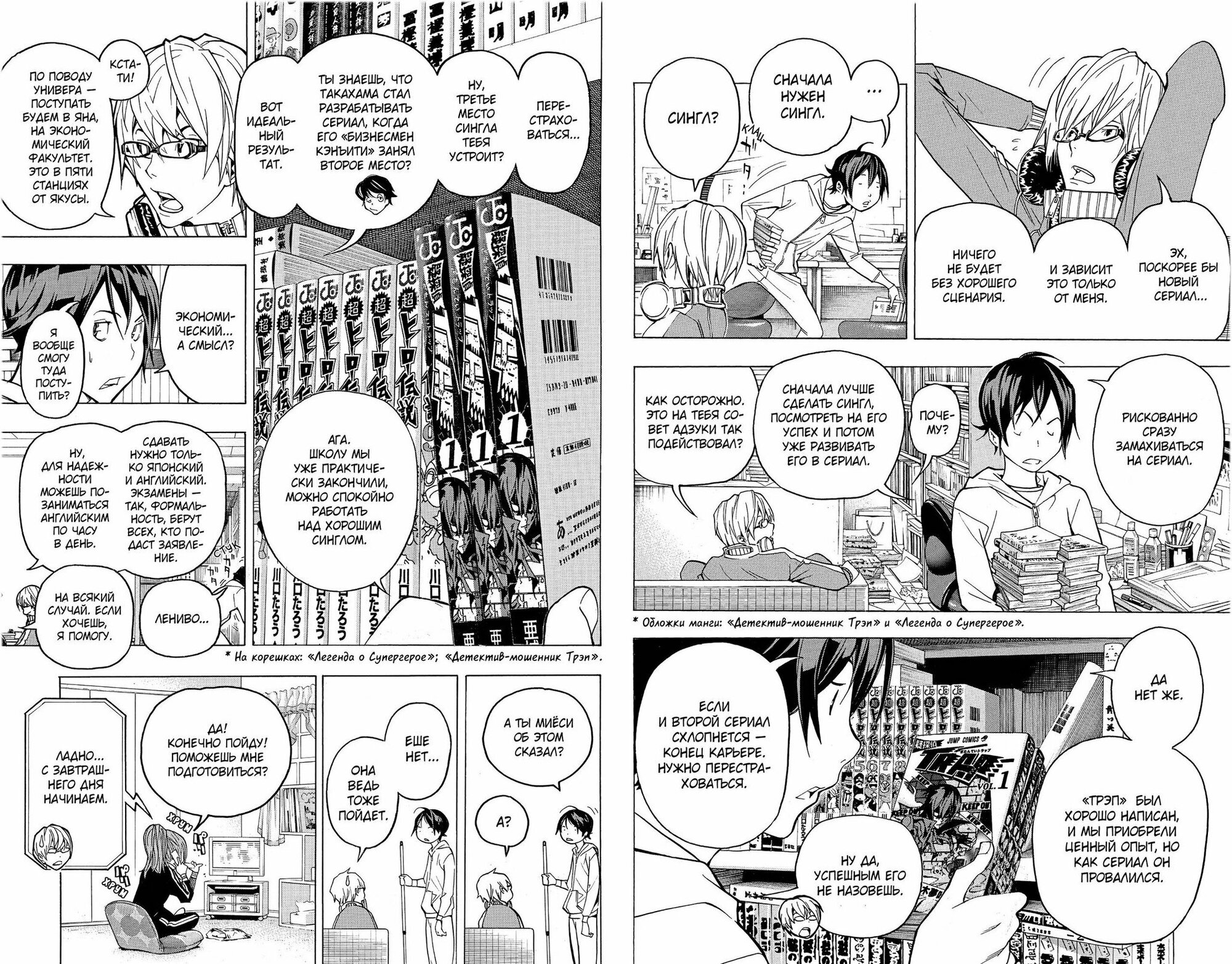 Моритака все лучше и лучше рисует, навыки улучшается с каждой страницей, прям на глазах! А сюжеты и истории, которые придумывает Акито!??