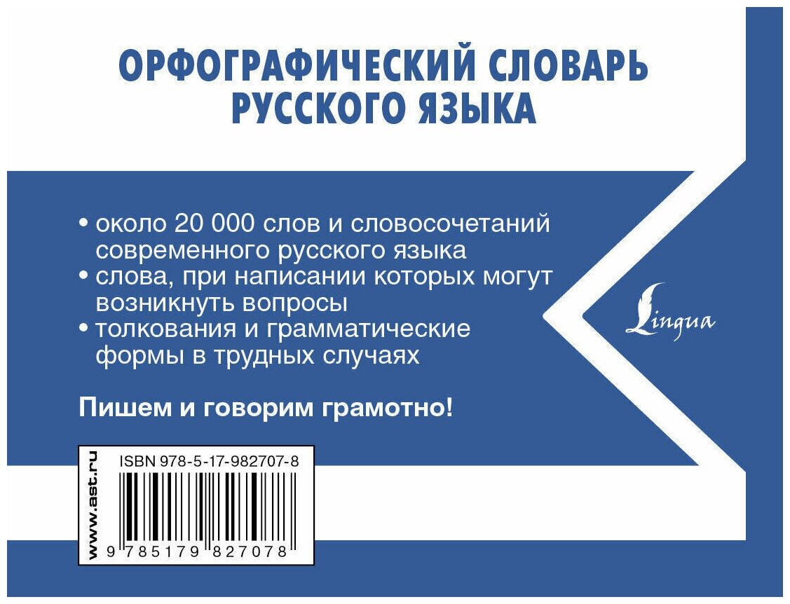 Словарь содержит около 20 000 слов и словосочетаний современного русского языка. Все слова снабжены ударениями, для некоторых приводятся произносительные пометы, а в тех случаях, когда необходимо подкрепить правописание, даются краткие толкования, отмечается связь между производными и производящими словами. Издание адресовано широкому кругу читателей, всем, кто хочет грамотно писать и говорить по-русски.