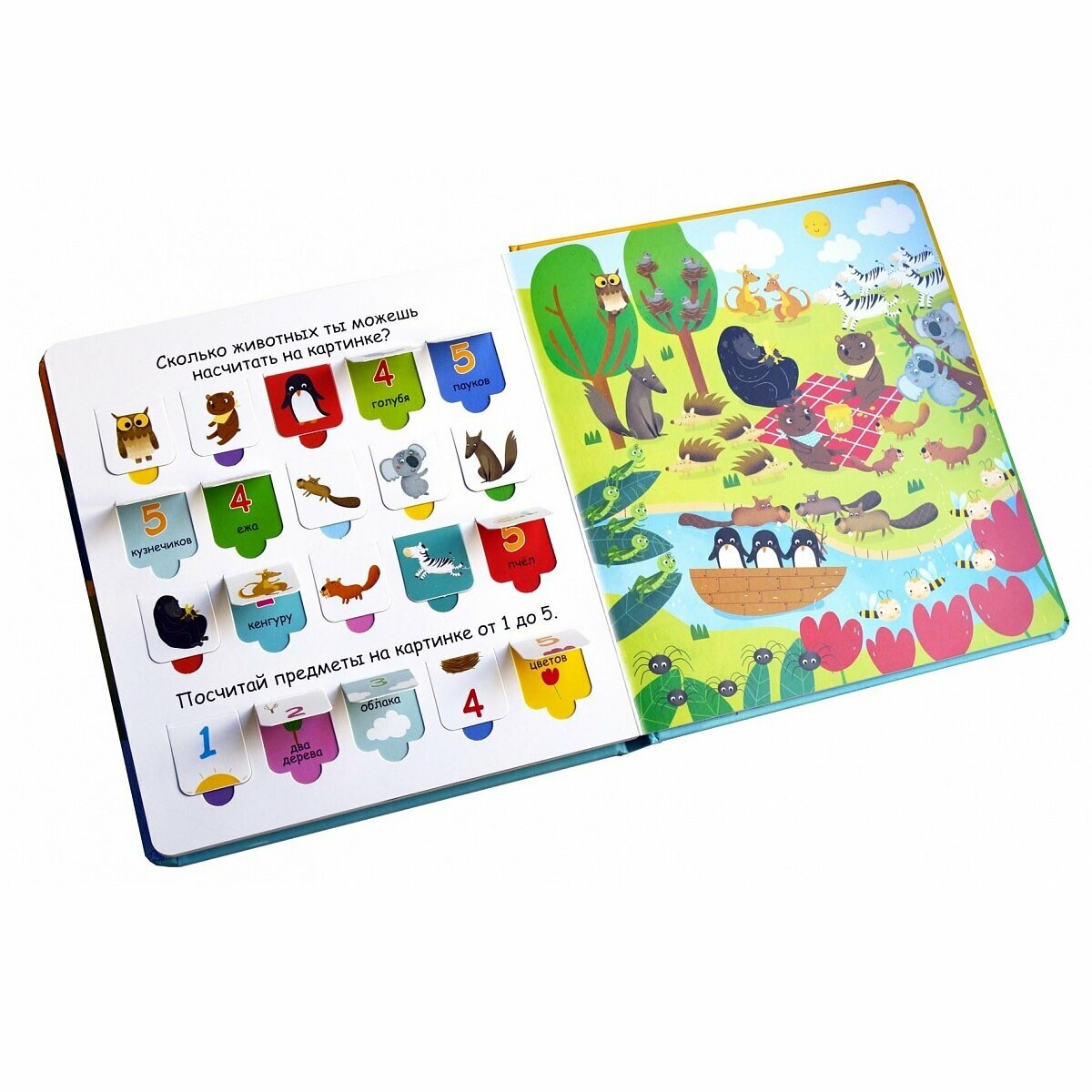 А ты можешь сосчитать всех животных, все машины и грузовики, фрукты и овощи? На страницах этой удивительной книги для малышей тебя ждёт первое знакомство с цифрами от 1 до 5, их названием и понятием количества. Под каждой строчкой ты найдешь яркую картинку или подпись с названием цифры. 100 секретных окошек, интересные вопросы и задания превратят обучение в игру. Разглядывай картинки, открывай секретные окошки и знакомься с цифрами, прямым и обратным счётом в пределах 5, отвечай на вопросы «сколько?», сопоставляй цифру с количеством предметов. Отправляйся в увлекательное путешествие в мир цифр! Пособие способствует развитию: Счёта от 1 до 5; внимания; мышления; мелкой моторики; воображения; логического мышления. Содержание: Открой створочки и узнай, сколько животных живёт на ферме; Посчитай изображения от 5 до 1; Сколько овощей ты можешь насчитать на картинке; И многое другое. Что ждёт внутри? Активити-задания; Крупные яркие иллюстрации; Задания на внимание; Задания на развитие зрительного восприятия «найти целое по части». Что особенного в этой книге: Развитие и постановка речи; 100 тайных окошек; Прямой и обратный счет в пределах 5; Стильные и яркие картинки развивают вкус и эстетическое восприятие; Удобный формат и размер книги. Что важно знать родителям? · Книга предназначена для детей от 2 лет; · Книга подходит как для индивидуальных занятий, так и для групповых.