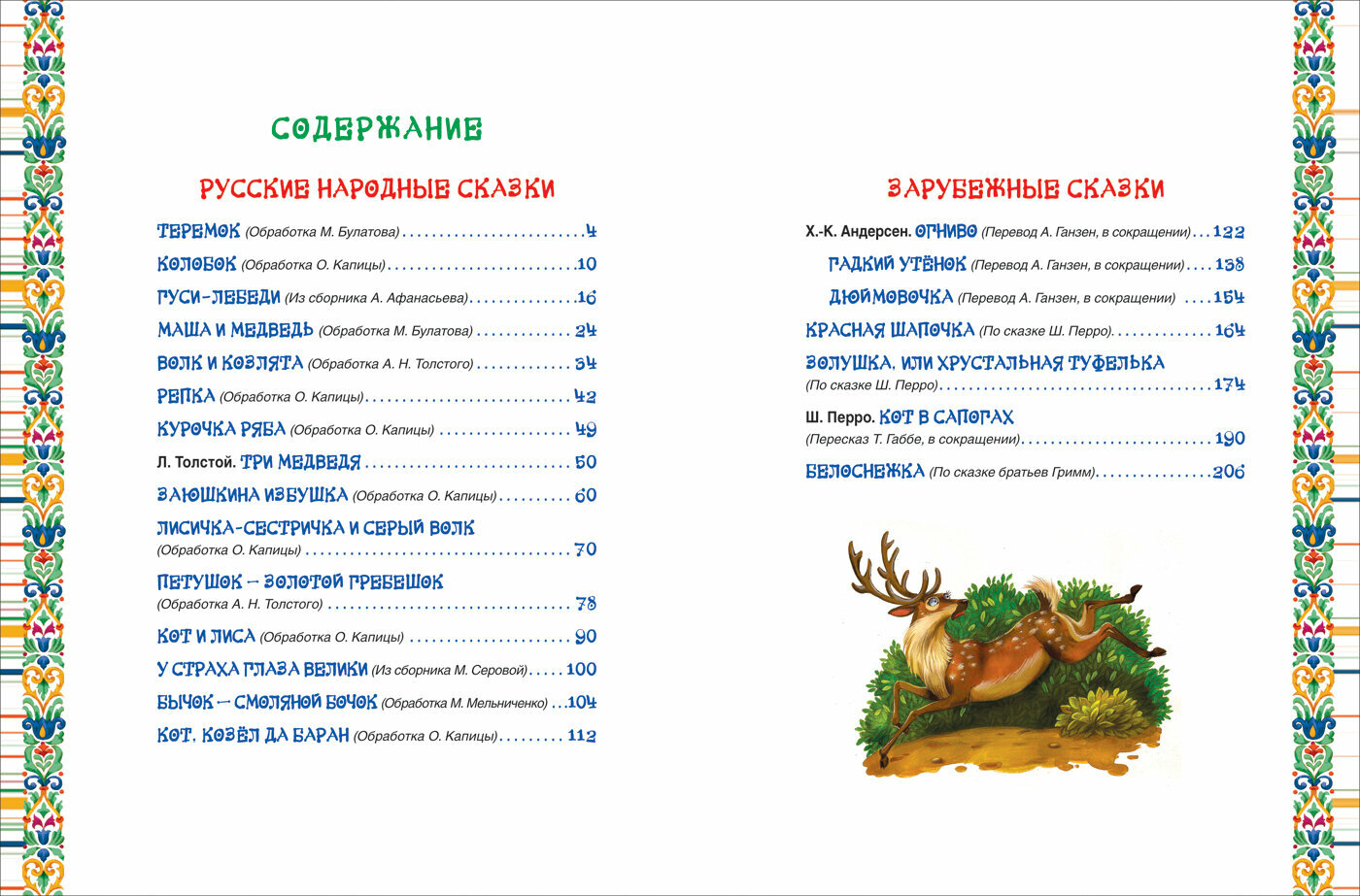 Замечательная книга! Очень удачный сборник самых известных сказок, с которыми обычно в первую очередь знакомят малышей. Все знакомые с детства нам самим, родителям, сказки собраны под одной обложкой - это очень удобно. Сказки дополнены красочными картинками. Книгу приятно держать в руках, листать, рассматривать иллюстрации, читать с ребенком сказки.