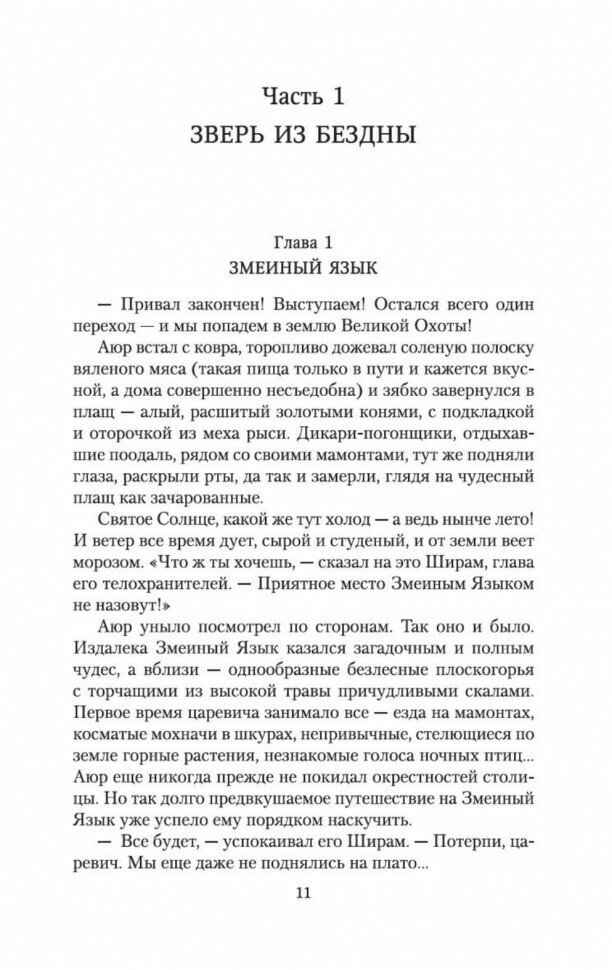 Пятнадцатилетний царевич Аюр отправляется на свою первую настоящую охоту, чтобы в единоборстве одолеть великого зверя. Его путь лежит в Ползучие горы, где все еще водятся мамонты и кровожадные саблезубцы. В желании испытать себя юноша даже не представляет, как далеко ему придется зайти на этом пути. То, с чем ему предстоит столкнуться, куда хуже любого дикого зверя…