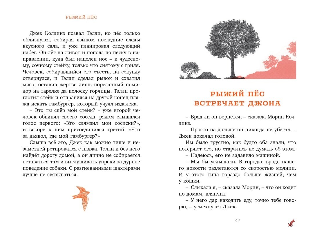 История Рыжего пса породы ред клауд келпи – история совершенно реальная, и произошла она несколько десятилетий назад в Австралии. Рыжий пёс – Блюи, как ещё его звали, – настоящая легенда северо-запада страны. Добродушный, умный, обаятельный, этот пёс цвета тёмной меди с янтарно-жёлтыми глазами был всеобщим любимцем. Он мог появиться в каком-нибудь посёлке и прожить среди людей несколько недель, а то и месяцев, а потом вдруг, остановив попутку (внезапно выскочив на дорогу перед знакомой машиной), отправлялся в путешествие и оказывался за несколько десятков километров от прежнего места обитания. Но Рыжий никогда не привязывался к одному человеку, до тех пор пока не познакомился с Джоном, парнем из шахтёрского городка, и тогда пёс понял, что с этой минуты жизнь его круто изменится…По роману Луи де Берньера в 2011 году режиссёр Крив Стендерс снял одноимённый фильм о знаменитом австралийском псе-путешественнике.Впервые на русском языке.