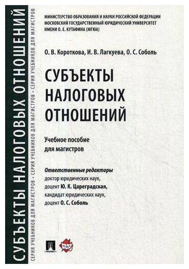Субъекты налоговых отношений. Учебное пособие для магистров (Короткова Ольга Валерьевна, Лагкуева Ирина Владимировна, Соболь Ольга Станиславовна); Проспект, 2018