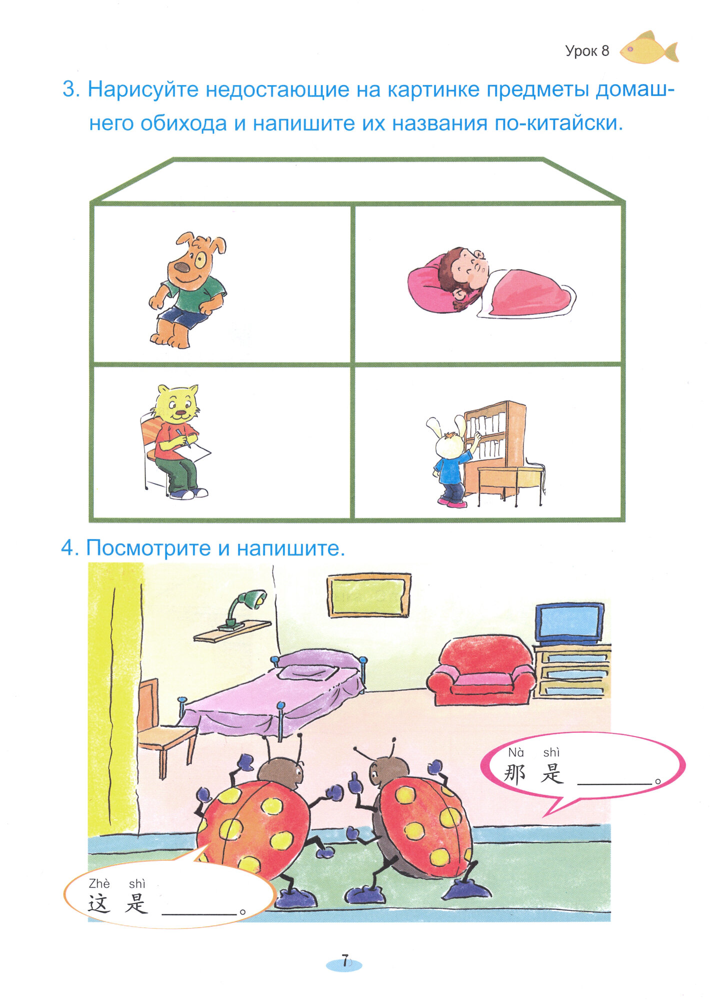 Рабочая тетрадь содержит большое количество заданий на закрепление пройденного материала, решение кроссвордов, раскрашивание картинок, решение ребусов и т.д. Задания подобраны таким образом, что учащиеся не только получают языковые знания, но и развивают свои творческие навыки.
