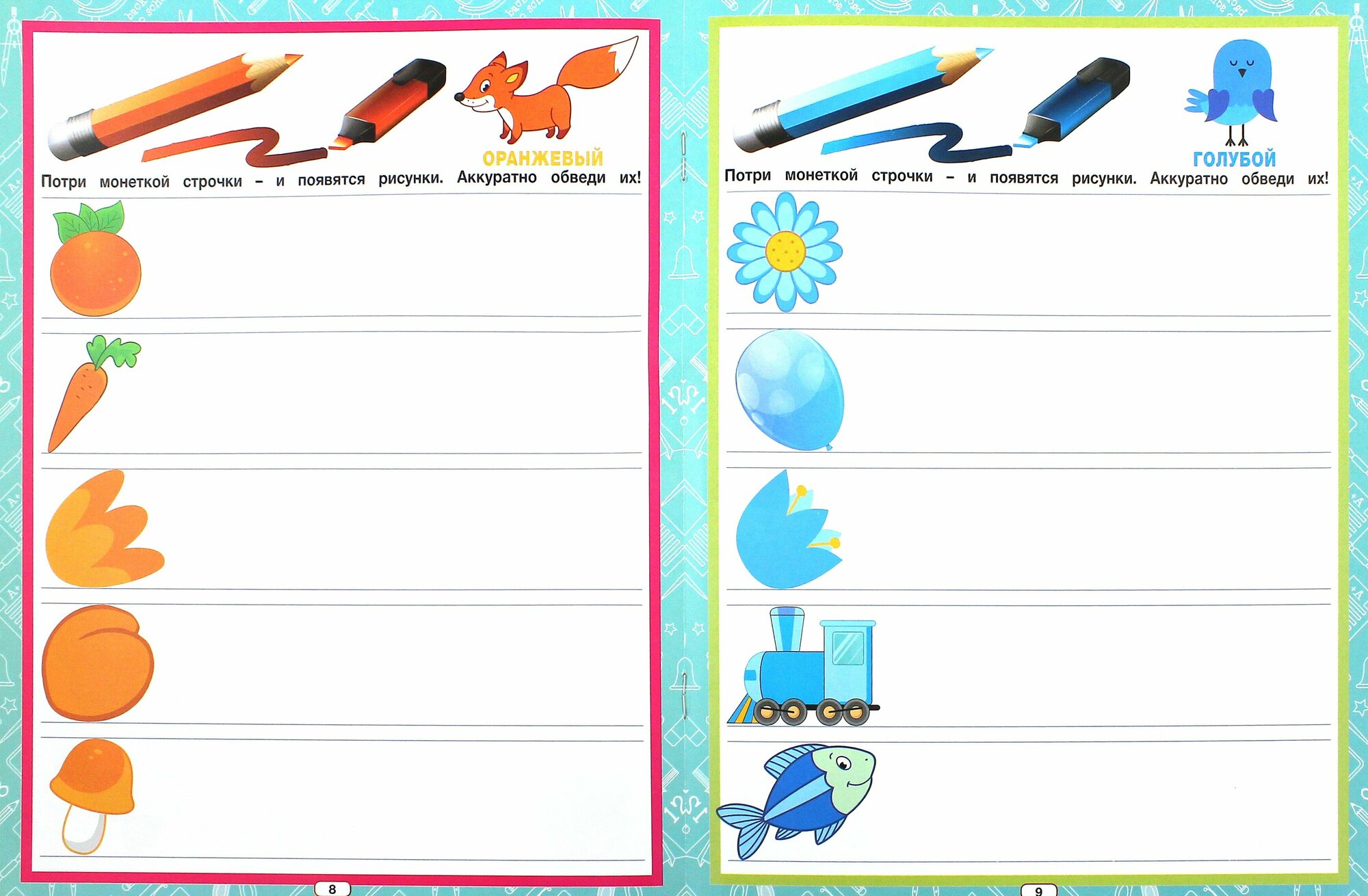 Прописи с сюрпризом на каждой странице - это простой, но эффективный способ заинтересовать ребёнка и превратить работу с прописями в волшебную игру. Для этого достаточно взять в руки монетку и ручку или карандаши - и в путь! Аккуратно потрите монеткой пустые строчки, и появятся контуры рисунков. Тренируйтесь с удовольствием!