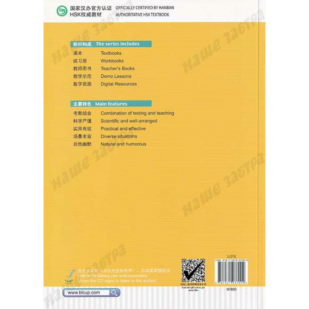Современный курс подготовки к новому экзамену HSK, который был разработан ведущими образовательными структурами Китая. В основе курса – эффективная методика обучения в форме тестирования. Множество интересных топиков, легкий, юмористический стиль изложения материала, цветные фотографии, разнообразные аудиофайлы обеспечат быструю подготовку к экзамену по китайскому языку любого уровня сложности.