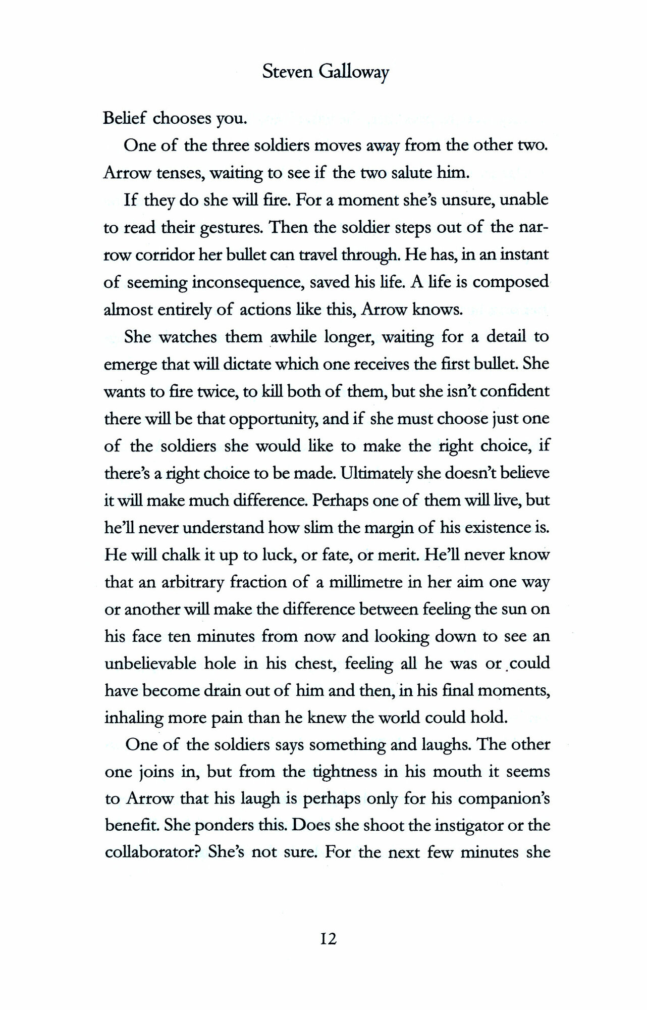 Snipers in the hills overlook the shattered streets of Sarajevo. Knowing that the next bullet could strike at any moment, the ordinary men and women below strive to go about their daily lives as best they can. Kenan faces the agonizing dilemma of crossing the city to get water for his family. Dragan, gripped by fear, does not know who among his friends he can trust. And Arrow, a young woman counter-sniper must push herself to the limits - of body and soul, fear and humanity.