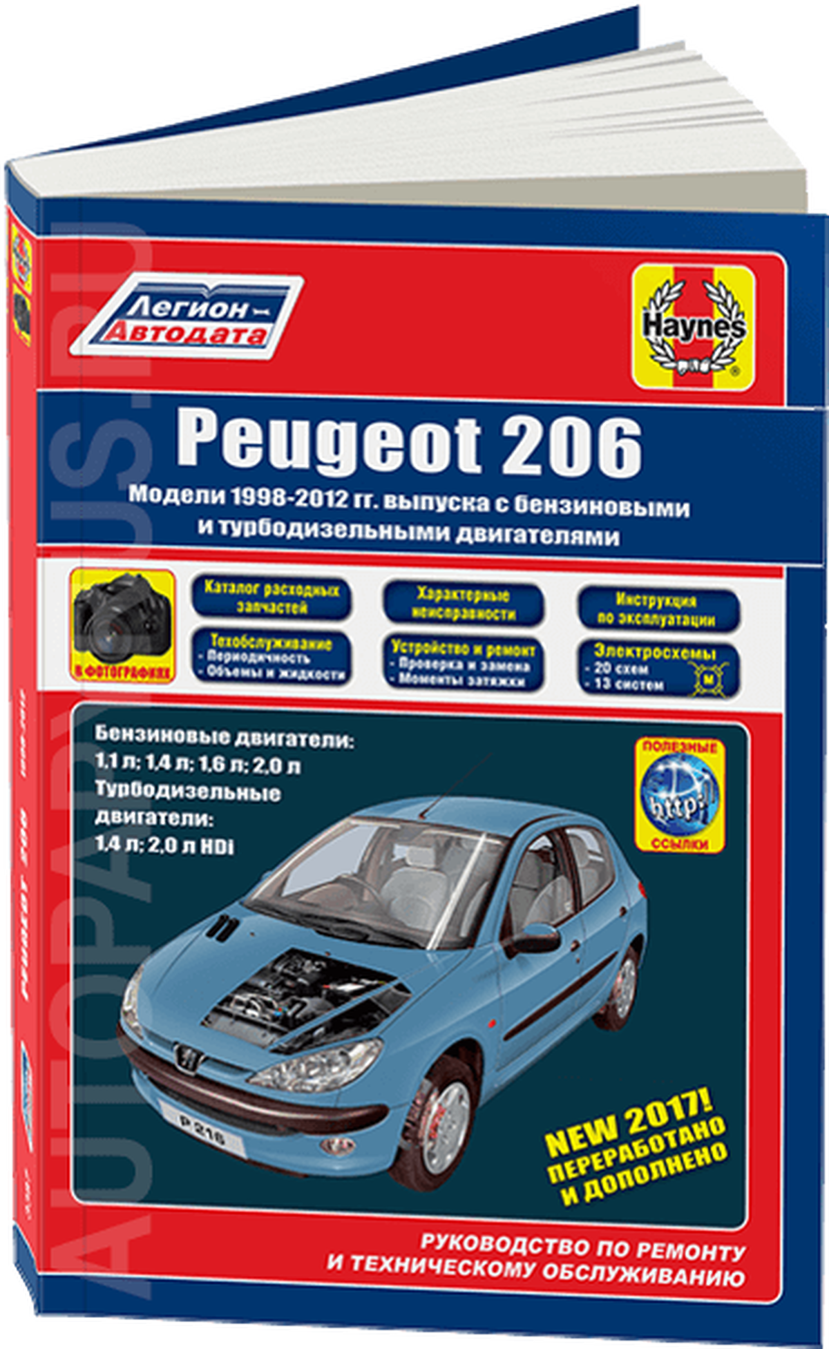 Издание первоначально опубликовано на английском языке компанией Haynes Publications Inc. под заголовком "Peugeot 206 Petrol & Diesel Haynes Repair Manual", Copyright ©Haynes North America, Inc.