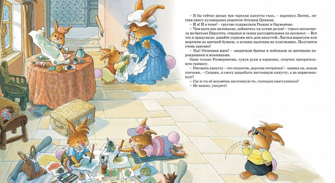 В этой книге вас ждёт новая встреча с кроличьим семейством, в котором крольчата – четверо сыновей и дочка - всё время попадают в удивительные, невероятные истории.Прежде всего вы узнаете о том, как Розмаринчик ради нескольких хрустящих капустных листьев, не думая о грозящей ему опасности, исполнил неистовый танец на снегу
