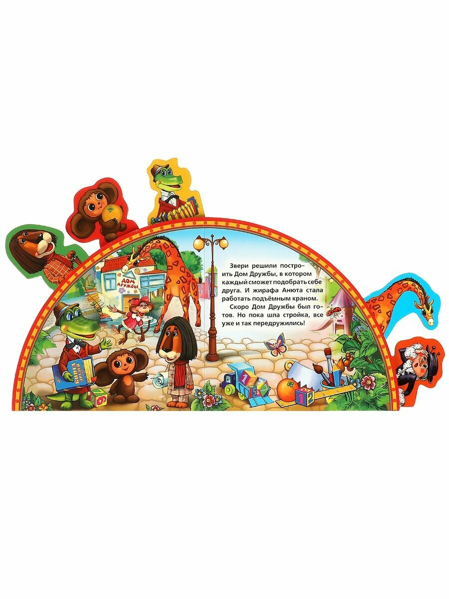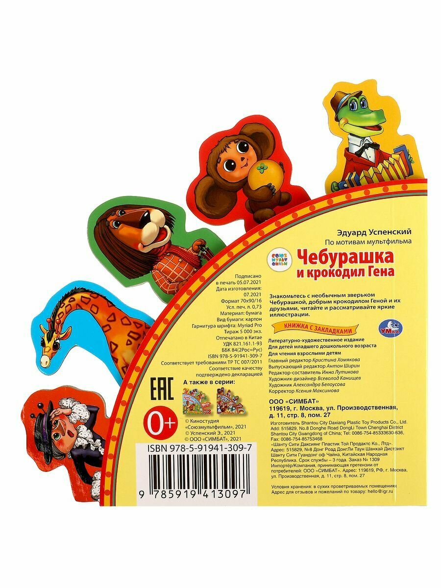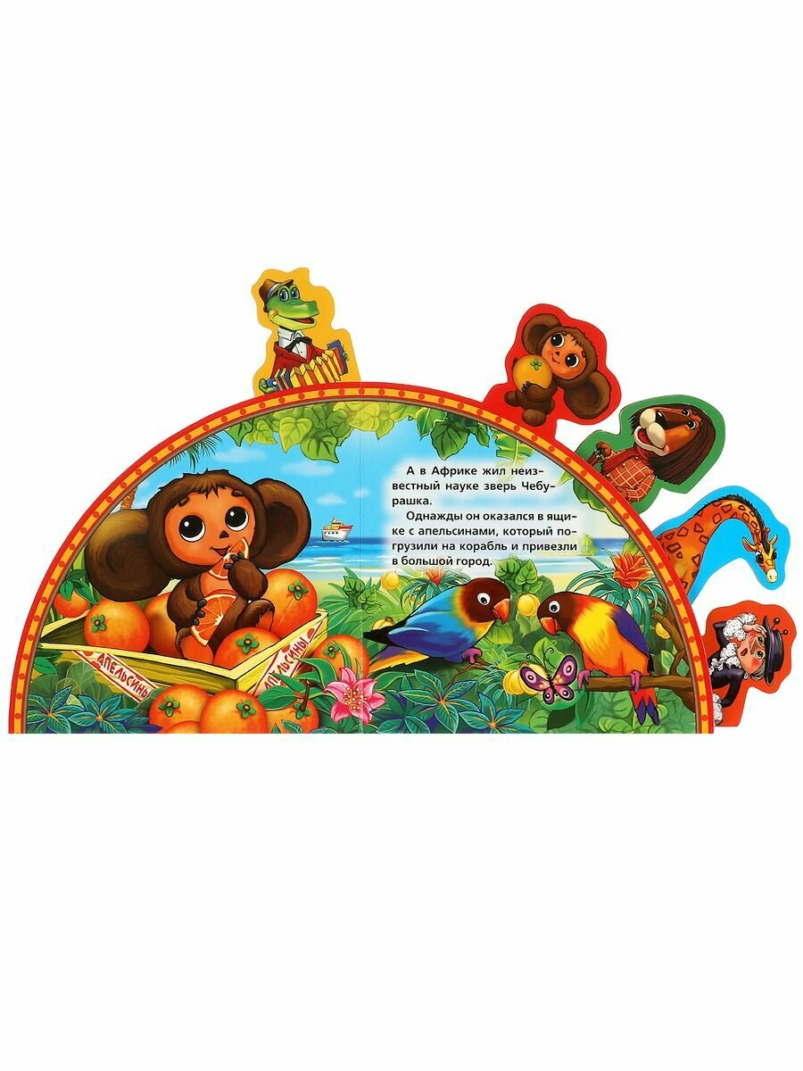 Эта книжка про Чебурашку и крокодила Гену имеет очень интересную задумку. Кроме ее необычной формы, она имеет красочные закладки, каждая из которых сделана в виде героя сказки. Перевернув одну из них, ребенок окажется на странице героя, соответствующего закладке и сможет прочитать о нем историю. Эта книга приведет в восторг детей своими яркими, красивыми и качественными иллюстрациями. Книга прослужит вам долгое время потому, что она сделана из очень плотного картона, который будет совсем не просто порвать.