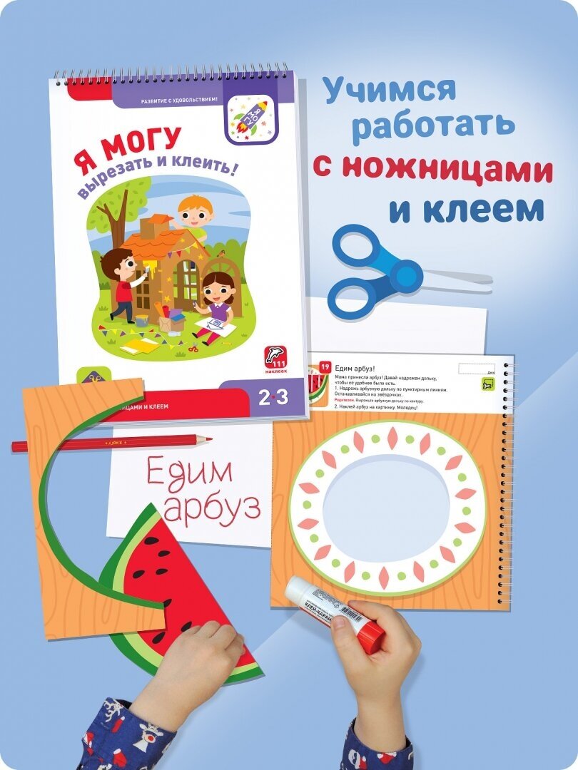 .63 задания, которые научат вашего ребёнка вырезать и клеить. Занятия помогут научиться правильно и безопасно пользоваться ножницами, а также наклеивать точно и аккуратно. Благодаря интересным сюжетам и постепенному усложнению заданий, ребенок играя освоит сложный навык вырезания.