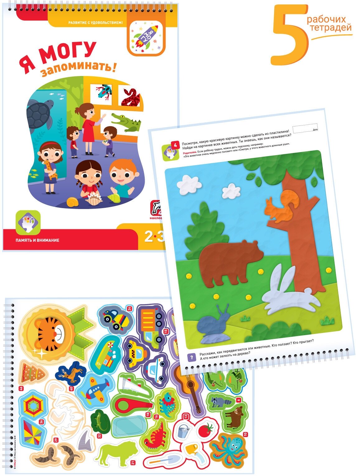 В наборе 5 альбомов формата А4. Набор в коробке. Альбомы на пружинах, что делает их заполнение очень удобным. Бумага глянцевая, приятная на ощупь, обложки их тонкого картона, тоже глянцевые. В каждом альбоме есть листы с наклейками. Иллюстрации яркие, рисунки понятны ребенку. Задания интересные, на каждом листе есть место для даты его исполнения. В начале каждого альбома есть рекомендации для родителей. Задания разные: на внимание, логику, мелкую моторику, память, фантазию и т.п. В каждом альбоме примерно по 50 страниц. Маркировка на наборе 0+. Горячо рекомендую к приобретению ??