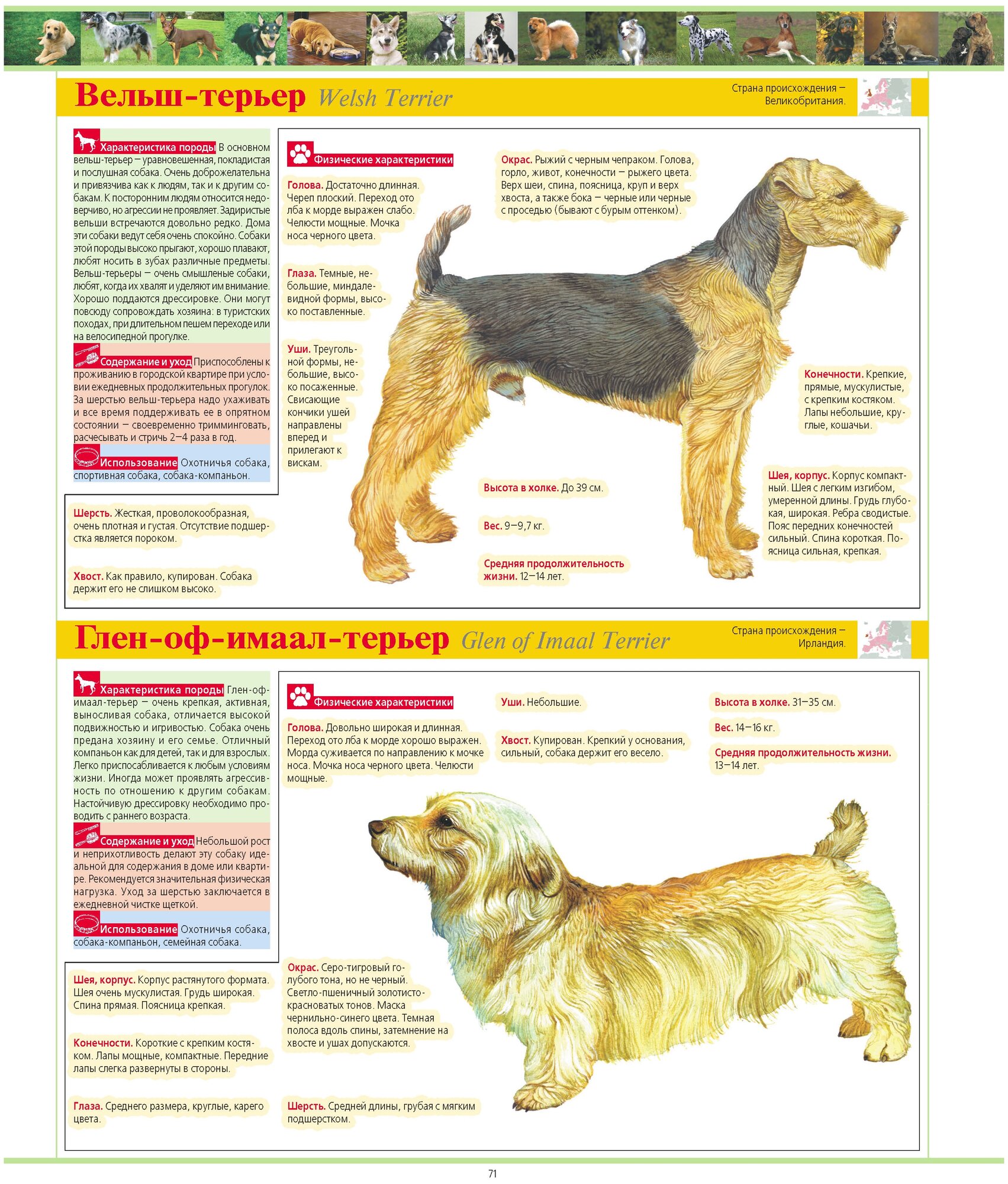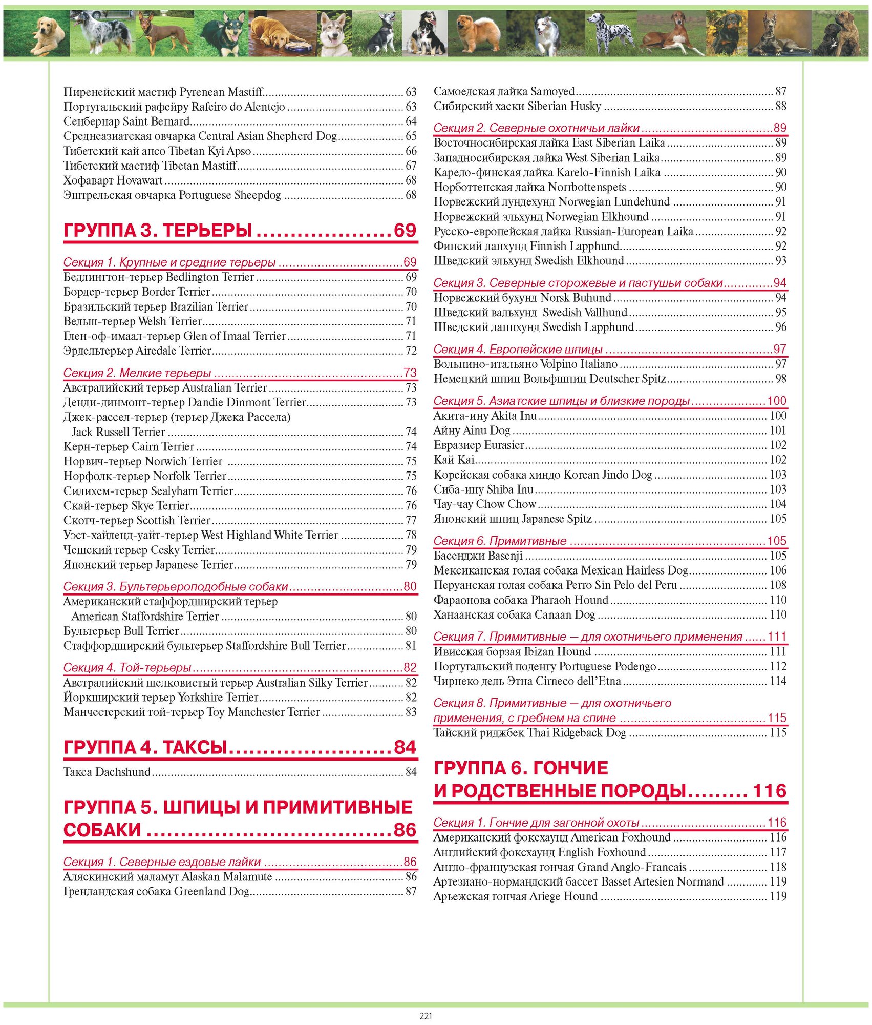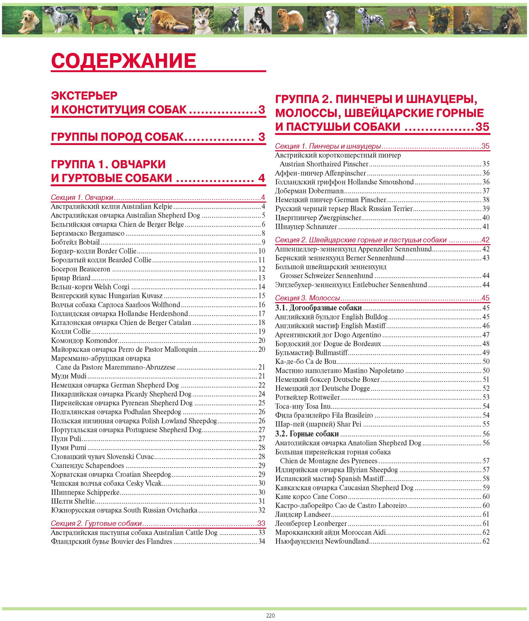Собака и человек сосуществуют уже около 12 тысяч лет, за которые это умное животное стало для людей не только верным Другом, но и надежным помощником. В начале каждой группы дана общая характеристика, затем следует описание соответствующей породы, приведены советы по содержанию и уходу. Подробнейшая физическая характеристика каждой породы.