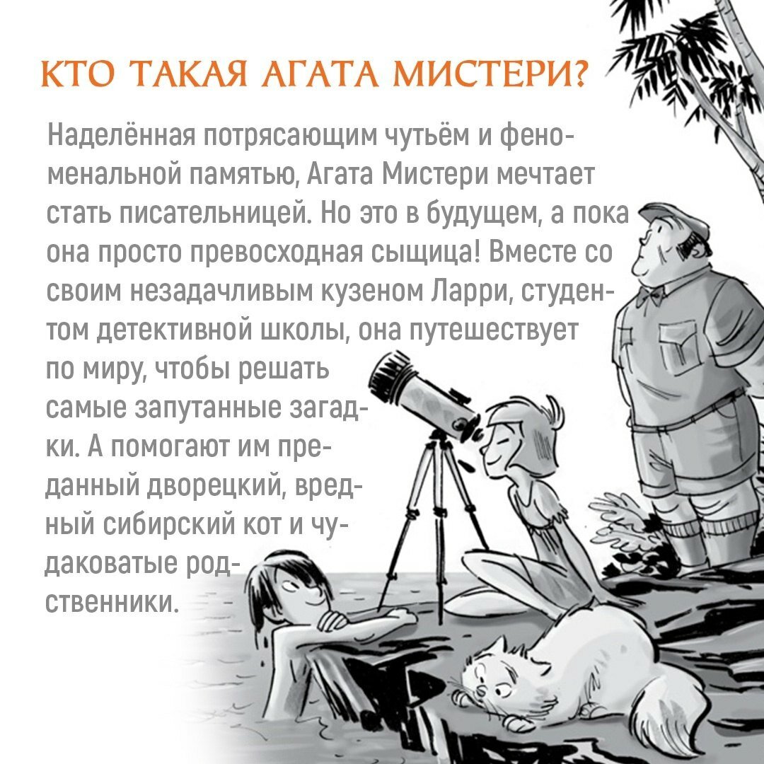 Захватывающий сюжет, читается на одном дыхании. Главный герой девочка Агата, которая в каждой книге ведёт расследование. В каждой книге познавательная информация о разных странах. И цена доступная , каждая книга до 300 руб -
