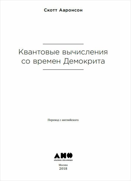 Квантовые вычисления со времен Демокрита (Лисова Наталья (переводчик), Ааронсон Скотт); Альпина нон-фикшн, 2018