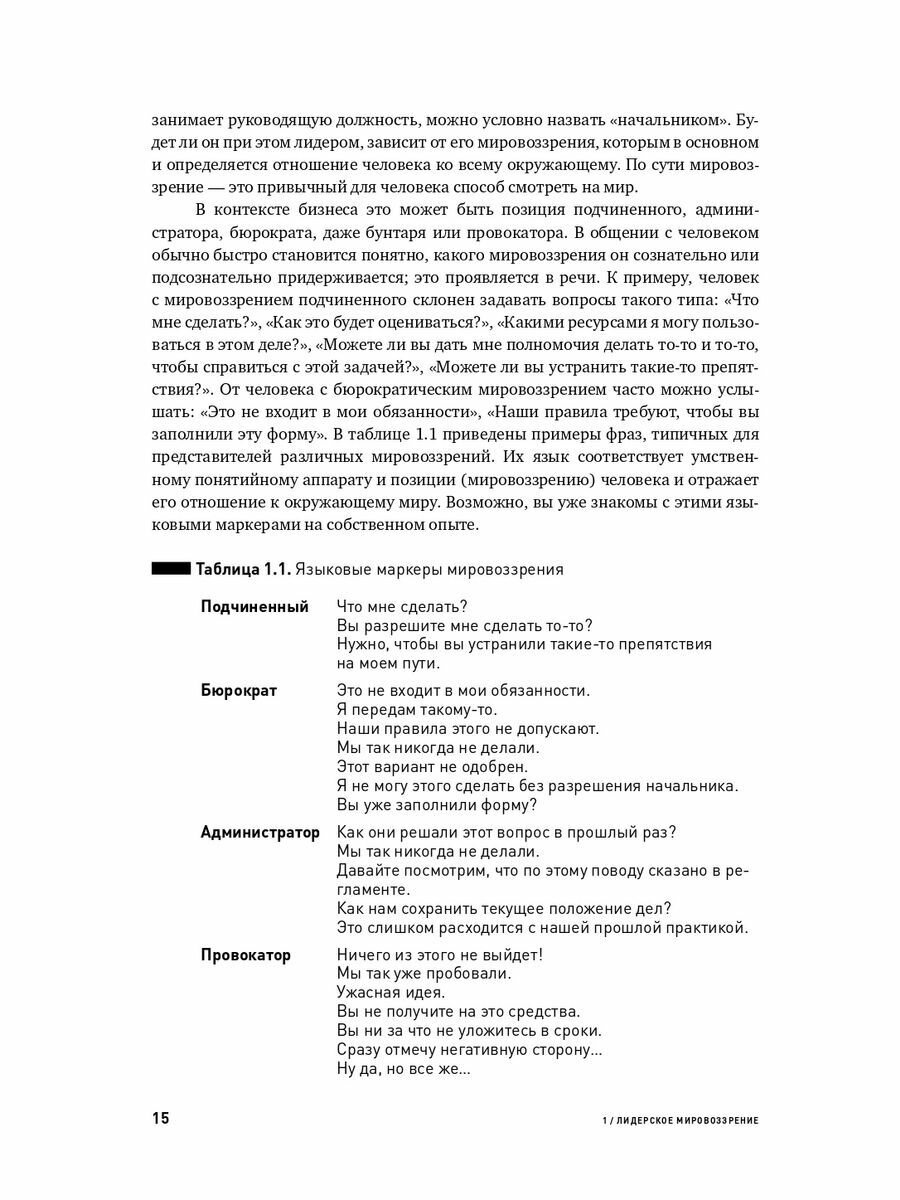 Данное издание представляет собой руководство для тех, кто изучает тему лидерства и хочет выработать продуктивную модель влияния на окружающих. В соответствии с центральной концепцией книги поведение человека складывается из трех уровней: видимой деятельности, сознательного мышления и подсознательных ценностей, убеждений, представлений и ожиданий от окружающего мира. Любое влияние на человека естественным образом затрагивает все три уровня, но в разном соотношении. Концепция «лидерства третьего уровня» применяется в программах обучения руководителей в различных странах мира. Содержание книги испытано как в аудиторных условиях, так и на практике. В структуру книги включены мини-кейсы по практическому применению рассмотренных понятий, а также подробная рабочая тетрадь с заданиями для самостоятельной оценки своих навыков.