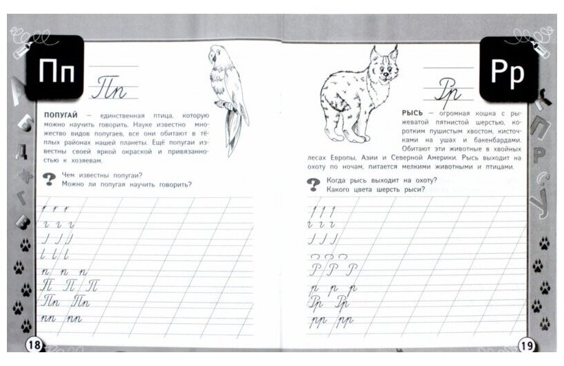 Иллюстрированные прописи помогут малышу быстро и легко научиться правильно писать и соединять буквы. Выполняя задания, маленький ученик расширит свои знания о животных, мире растений, народном фольклоре, разовьет мышление и логику.