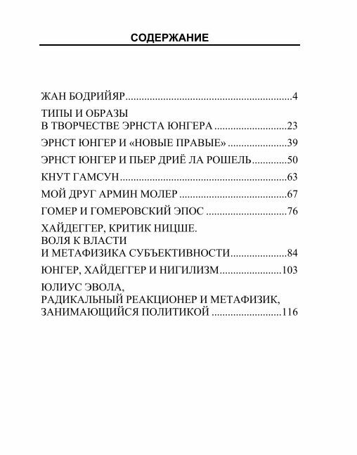 Книга представляет собой собрание работ Алена де Бенуа, представителя современной французской философии, относящегося к общественно-политическому течению «новых правых». В данных работах автор анализирует труды, взгляды и жизненный путь таких мыслителей разных эпох, как Бодрийяр, Гомер и Хайдеггер, Ницше и Гамсун, Юнгер и Дрие ла Рошель, Эвола и Молер. Общая идея, связывающая между собой столь разные фигуры - поиск альтернативных (по отношению к сегодняшней цивилизации) ценностных ориентиров.