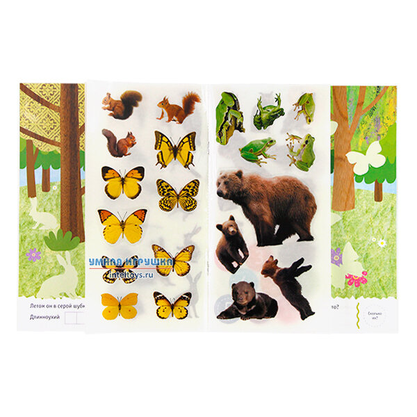Задача ребенка - правильно распределить их по страницам и ответить на вопросы. Сделать это будет несложно благодаря подсказкам.