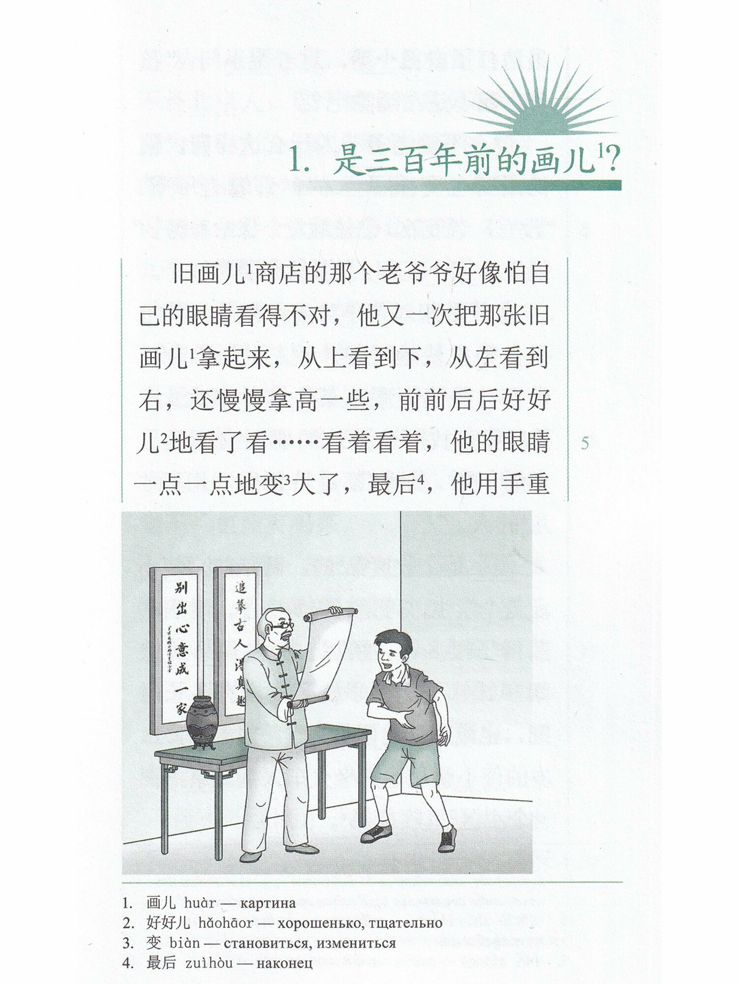 Книга для чтения "Одна старинная картина" из серии "Китайский бриз" предназначена для изучающих китайский язык. Она поможет в освоении новой лексики и расширении словарного запаса. Издание относится к уровню 2: чтобы освоить новую лексику из пособия, необходимо знать 500 базовых слов.