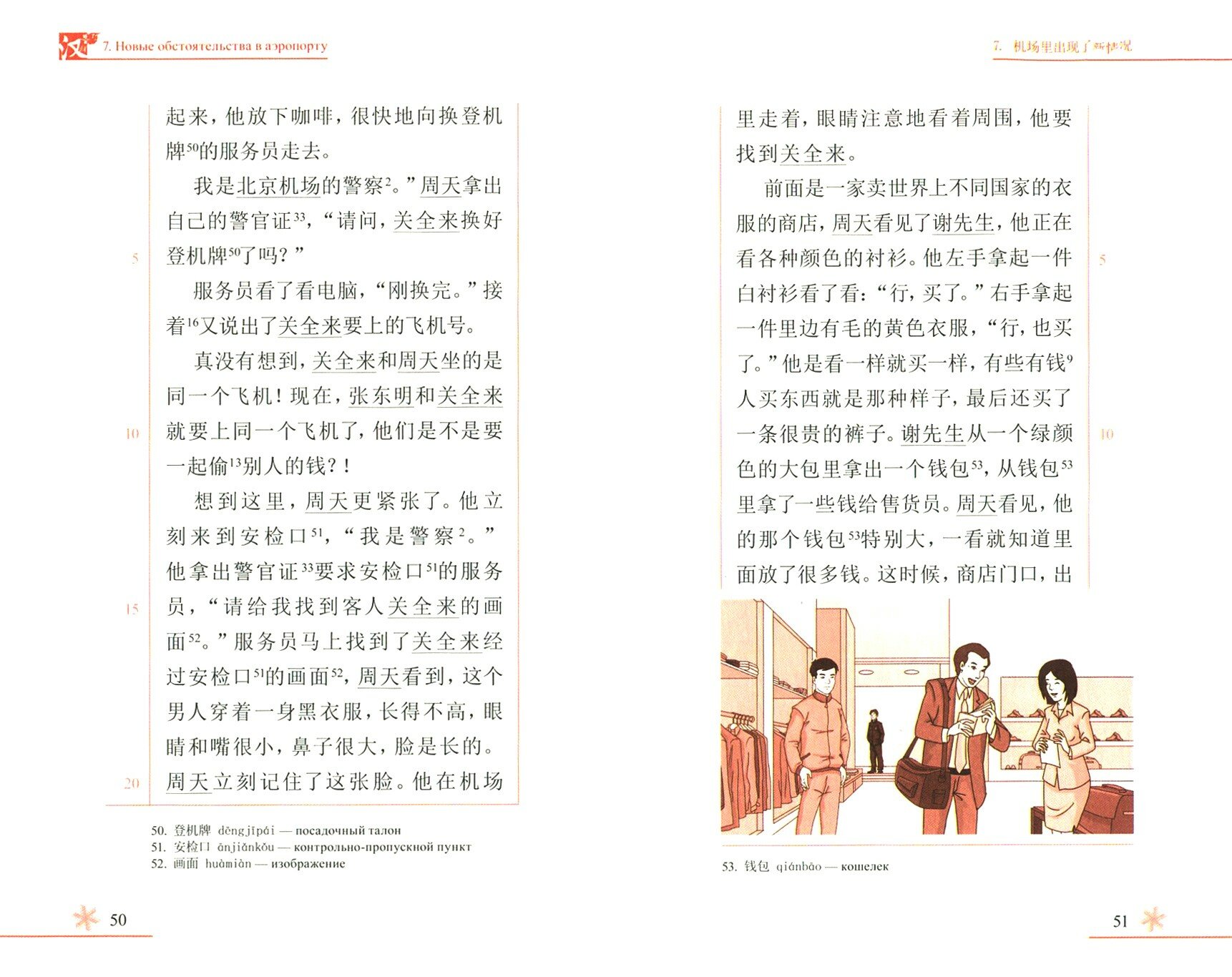 Вся история написана так, что запоминание новых слов происходит за счет их частой повторяемости. Новые слова оформляются в виде сносок и размещаются внизу страницы, что очень удобно при чтении. -