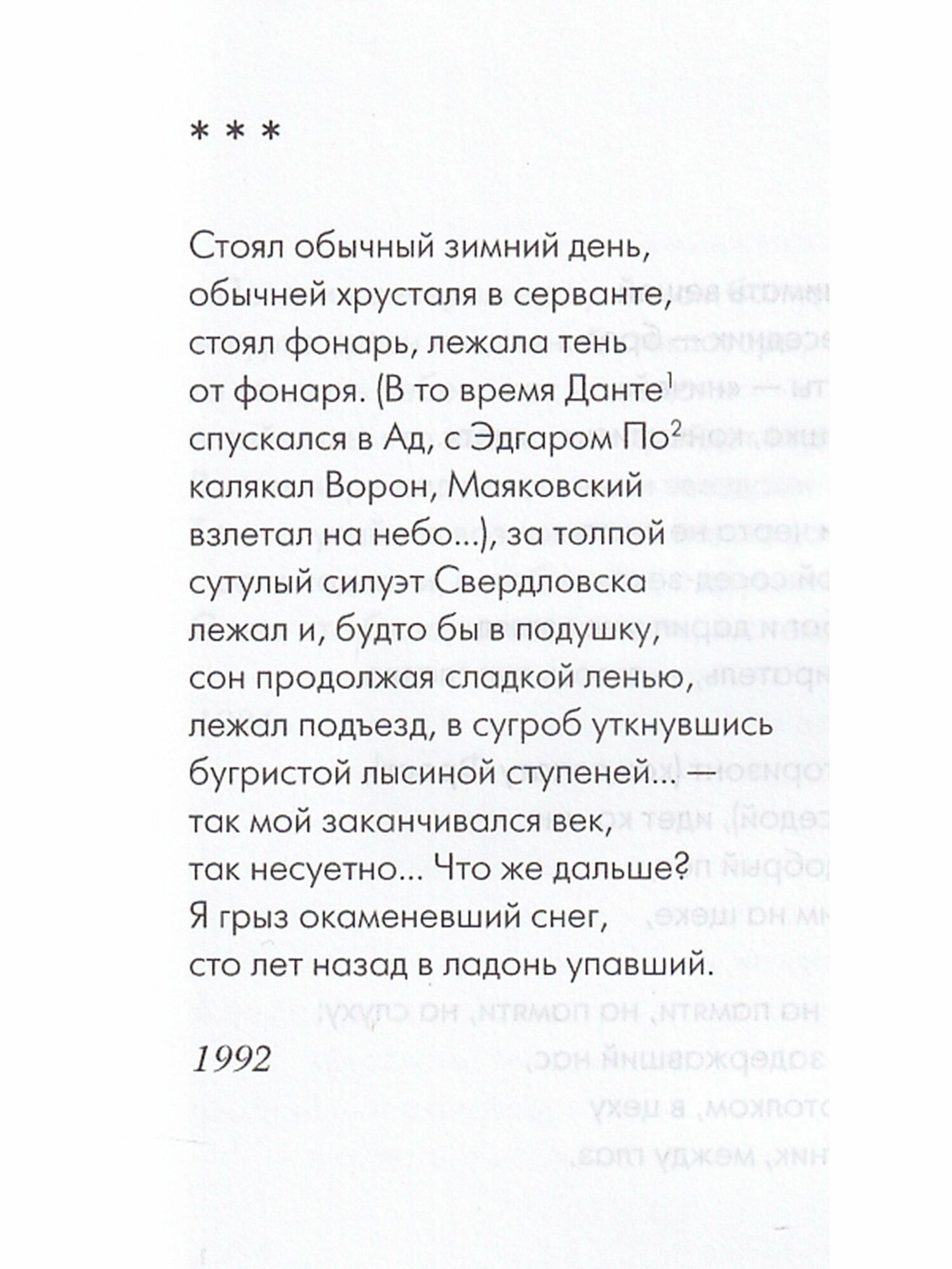 Поэзия Бориса Рыжего была и осталась не совсем поэзией со всей ее музыкой слов. Это - мудрость, которой не перестаешь удивляться. Это - магический круг Пушкина, Лермонтова, Маяковского, Высоцкого. Он и на Шукшина похож, а тот ведь с невероятной остротой видел самые простые вещи. Он впивался во все движения действительности, во все ее изгибы и несуразности, кошмар и красоту. И когда читаешь его, плачешь и смеешься. И сердце болит от восторга. И плачешь опять. И понимаешь, что самое ужасное неизбежно: сильный человек идет туда, откуда не возвращаются.