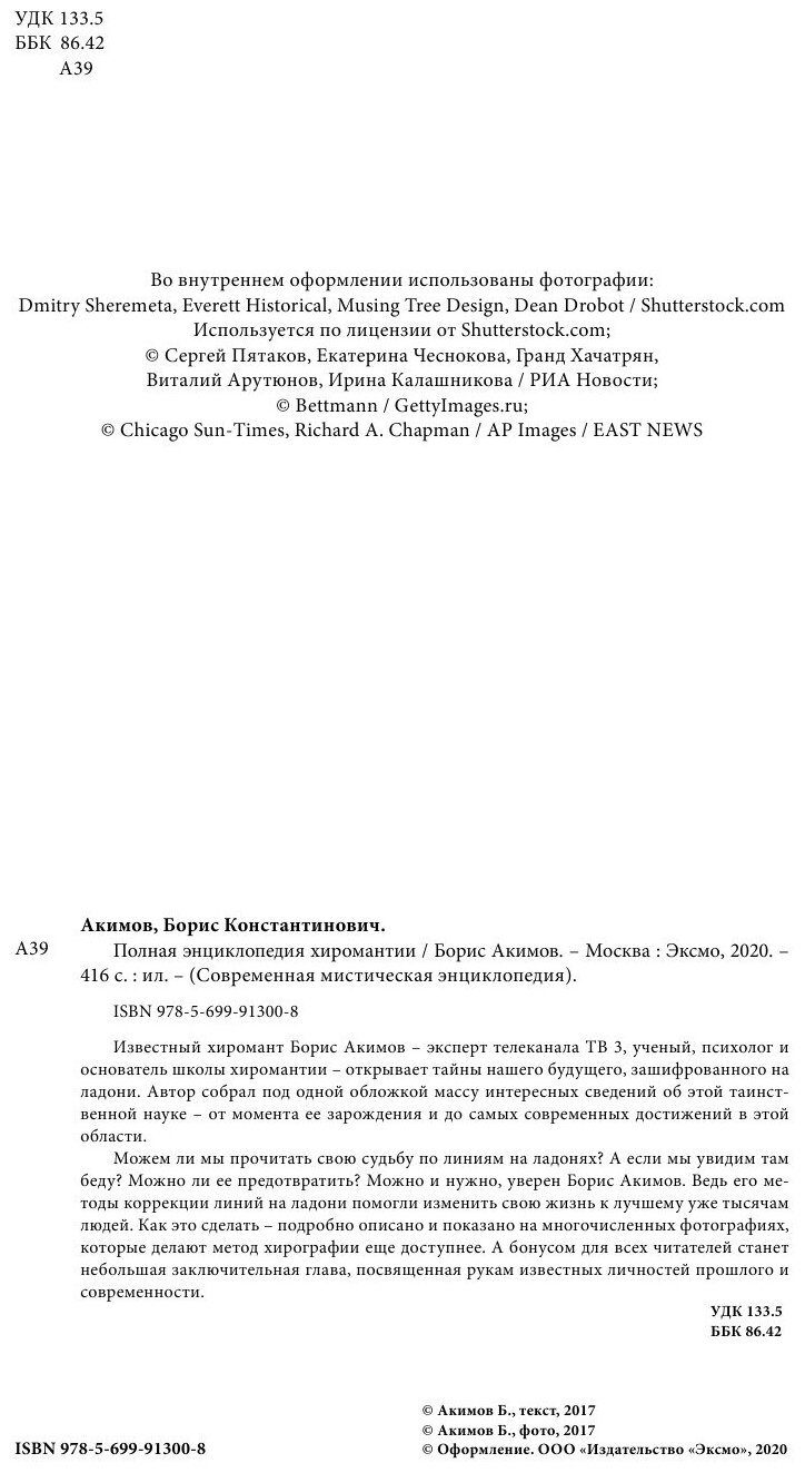Полная энциклопедия хиромантии (Борис Константинович Акимов); Эксмо, 2023
