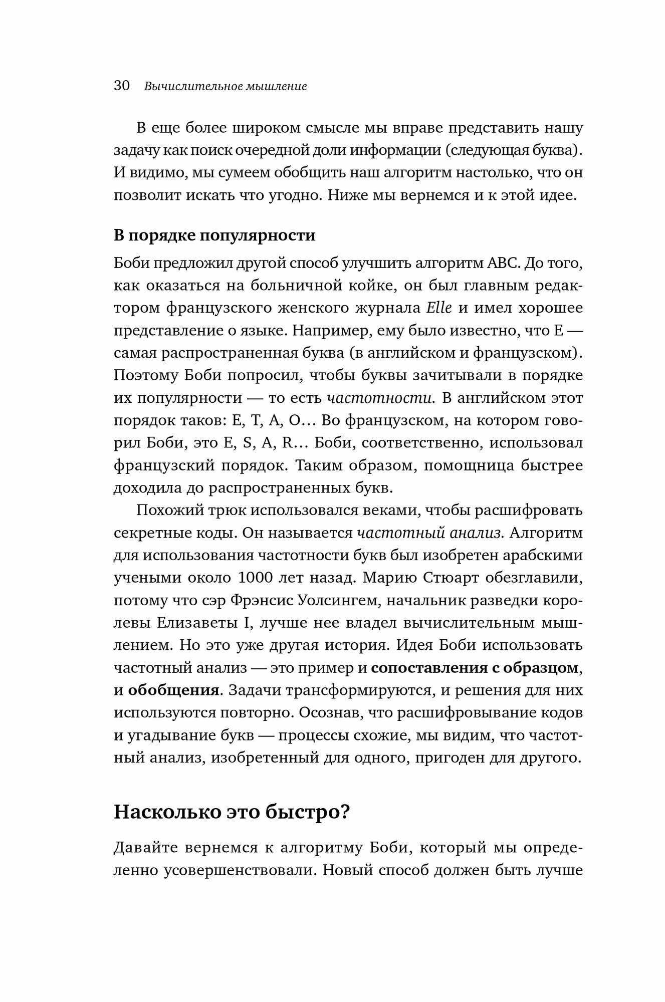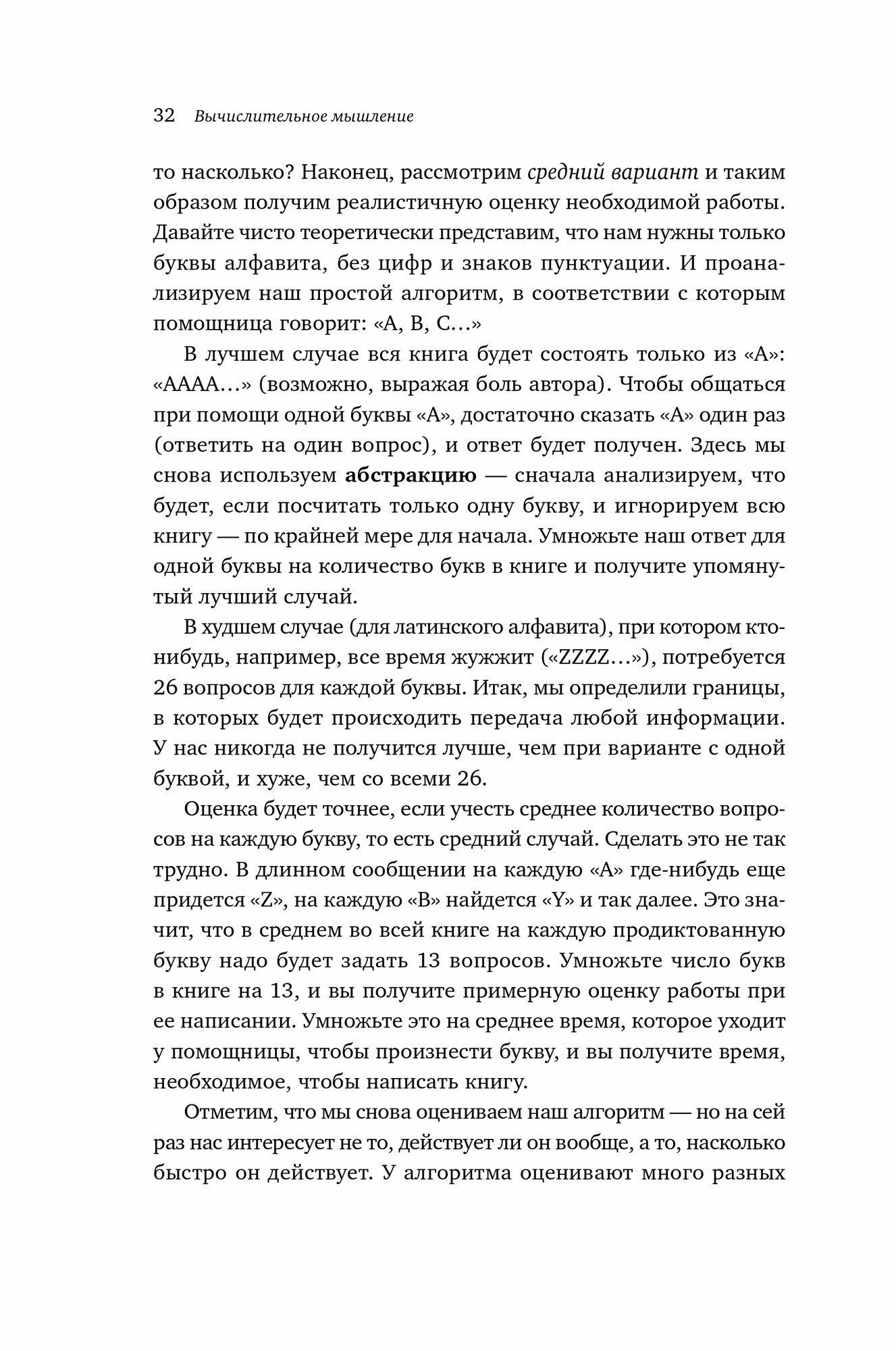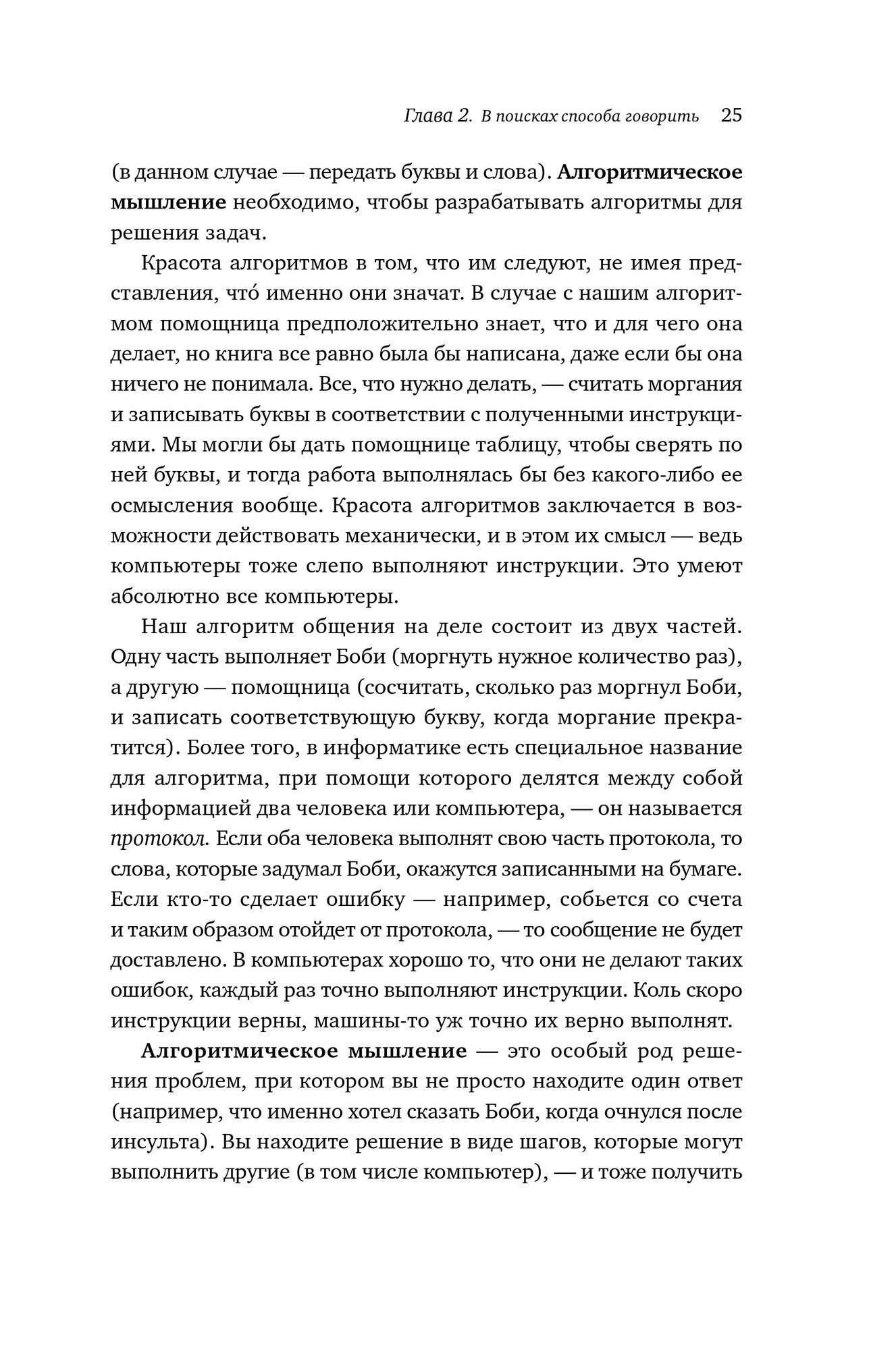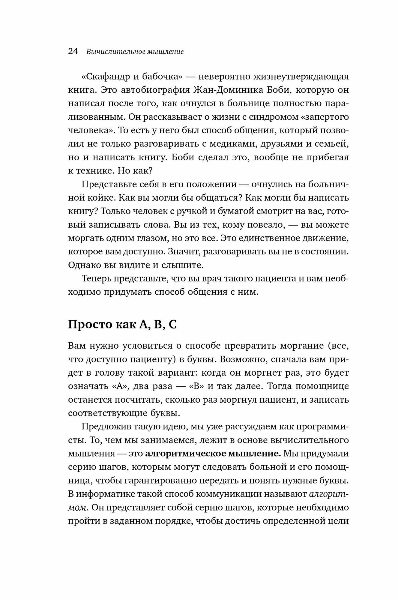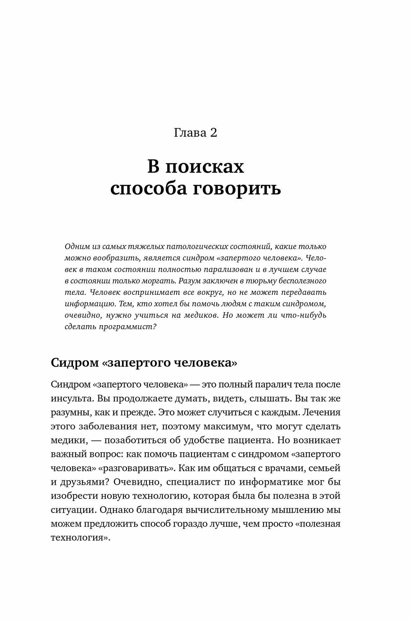 Вычислительное мышление — это мощный инструмент для решения задач и понимания мира. Оно лежит в основе программирования, благодаря ему ученые решают задачи в области информатики, но его же можно использовать и для решения повседневных проблем. Оно настолько важно, что во многих странах его стали преподавать в школе. Но в чем же его суть? Если вы хотите узнать больше о вычислительном мышлении, ищете новые способы стать эффективнее и любите математические игры и головоломки, эта книга для вас. В то же время вы научитесь навыкам, необходимым для программирования и создания новых технологий. Даже если вы не планируете писать программы и изобретать, вы сможете применять навыки вычислительного мышления, чтобы справиться с любыми жизненными проблемами.