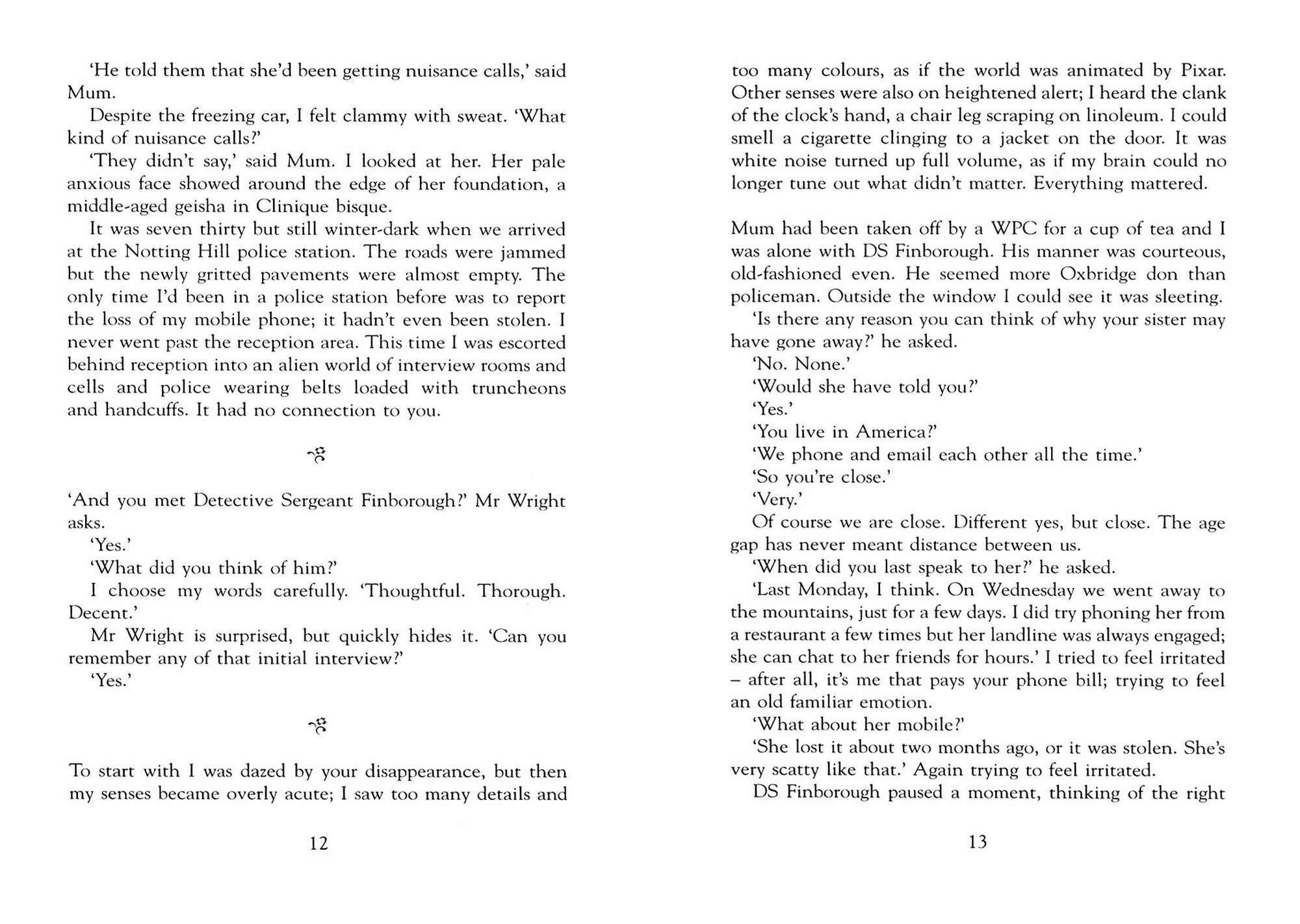 `My sister would never have killed herself...`When Beatrice hears that her little sister, Tess, is missing, she returns home to London on the first flight available. But Bee is unprepared for the terrifying truths she must face about her younger sibling when Tess`s broken body is discovered in Hyde Park. The police, Bee`s friends, her fiance and even her mother accept the fact that Tess committed suicide. But nobody knows a sister like a sister, and Bee is convinced that something more sinister is responsible for Tess`s untimely death. So she embarks on a journey to discover the truth, no matter the cost...