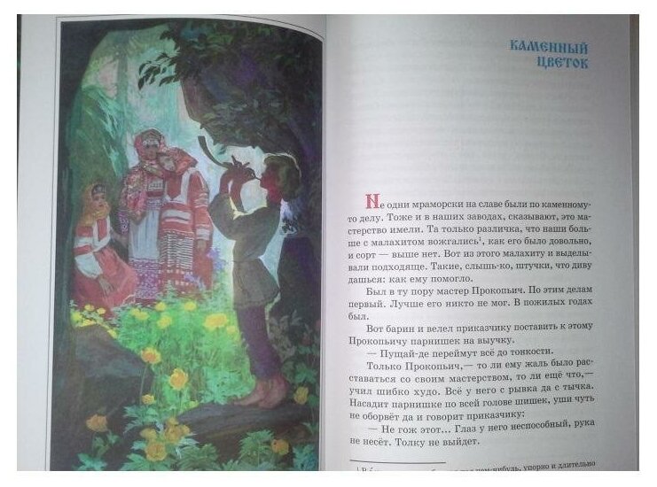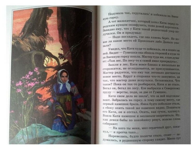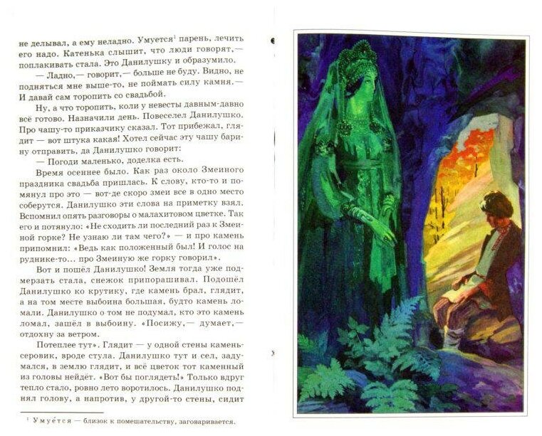 Ещё один маст-хэв для школьников, не пропускающих уроки литературы. Больше всего меня впечатлили иллюстрации - образ Хозяйки Медной горы передан замечательно, внушительная дама. Картинки иной раз всю страницу занимают и это прекрасно. Отличный шрифт. После тусклой бумаги, мелких серых буковок и перекошенных абзацев львиной доли книжек в мягких обложках для взрослых, глаза отдыхают на качественной полиграфии. Родители! Не экономьте на детях! Чтение должно быть и в радость, и не во вред здоровью. Иначе ваш наследник это занятие никогда и ни за какие посулы угрозы не полюбит. За что Самоваровские книги так приятны мне, так это за заботу.
