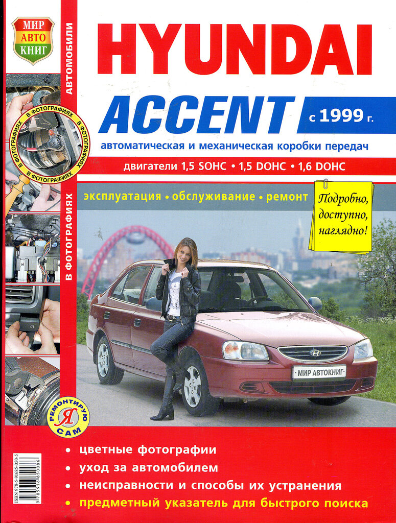 Книга HYUNDAI Accent (99-) цветные фото серия "Я ремонтирую сам" МИР АВТОКНИГ Мир Автокниг (45035)