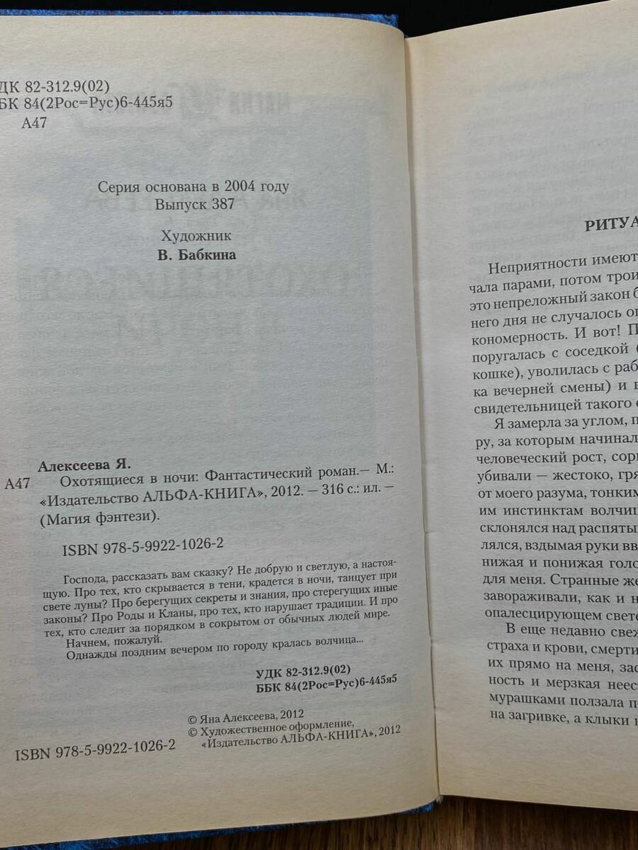Книга: Охотящиеся в ночи (Яна Алексеева); Альфа-книга, 2012