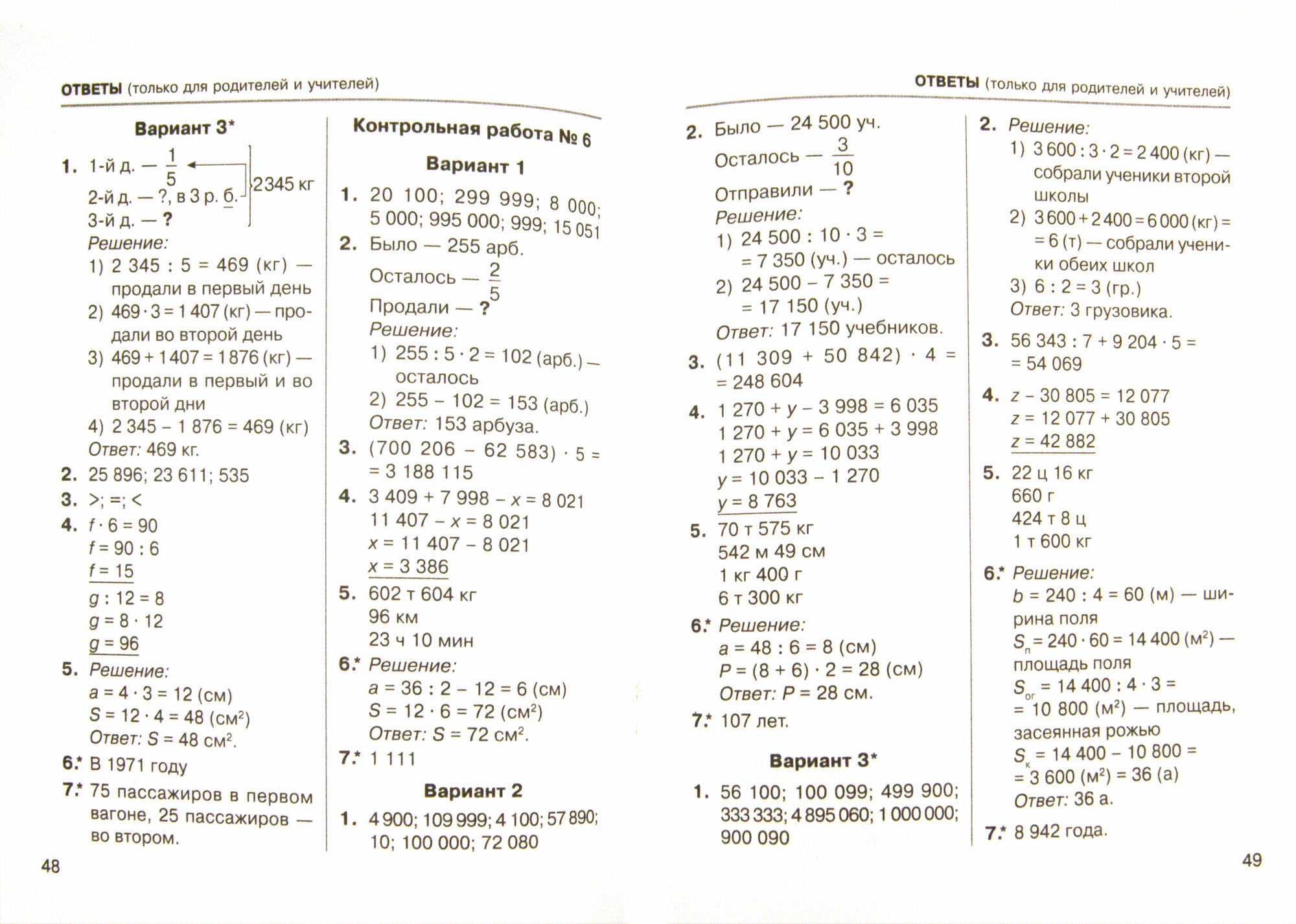 В учебное пособие включены контрольные работы по математике для 4 класса. Тетрадь адресована не только учителям - для использования в работе на уроке, но и родителям - для занятий с детьми дома. Содержание контрольных работ соответствует программным требованиям. В каждой работе по уровню сложности представлены обычные варианты и вариант повышенной сложности. Работы достаточно объёмные. Это позволит учителям и родителям отобрать задания, соответствующие уровню класса или отдельного ученика. Родителям эта тетрадь даст возможность отрабатывать со своими детьми умения решать примеры и задачи, выполнять самые разнообразные задания. Взрослые могут также предложить ребёнку выполнить только те задания, которые вызывают у него определённые трудности.
